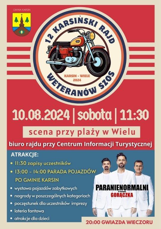 Warto przyjść, bo mamy atrakcje i dla dzieci i dla dorosłych. Mamy kabaret Paranienormalni, to gwoźdź programu naszego rajdu, który wieczorem będzie. A ponadto parada przez gminę Karsin. Mamy atrakcję dla dzieci w postaci zamków dmuchanych, mamy konkursy, mamy loterię fantową, mamy lody dla dzieciaków przygotowane. No i dla uczestników rajdu, jak zawsze, naklejki gadżety i poczęstunek. Każdy przyjdzie na pewno syto najedzony.