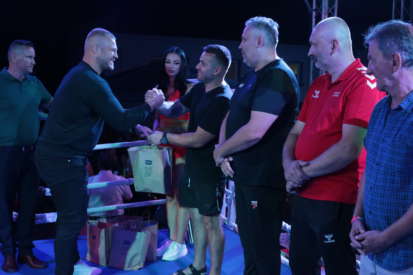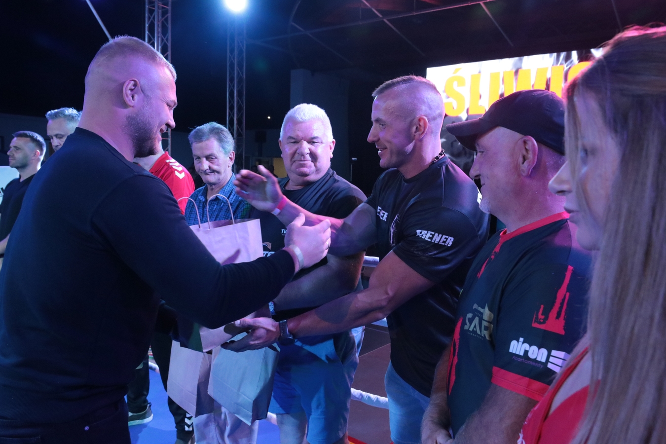 Nierozstrzygnięta pozostała walka wieczoru podczas drugiej edycji Śliwickiego Boxing Show. Po czterorundowym pojedynku sędziowie orzekli remis w starciu Rafała Jackiewicza z Damianem Mielewczykiem. Zresztą takim werdyktem zakończyło się pięć z 14 walk z głównej karty. Wśród nich był pojedynek towarzyski Sebastiana Porazińskiego z Tucholi, który akurat w śliwickim amfiteatrze debiutował w ringu w wieku 48 lat.