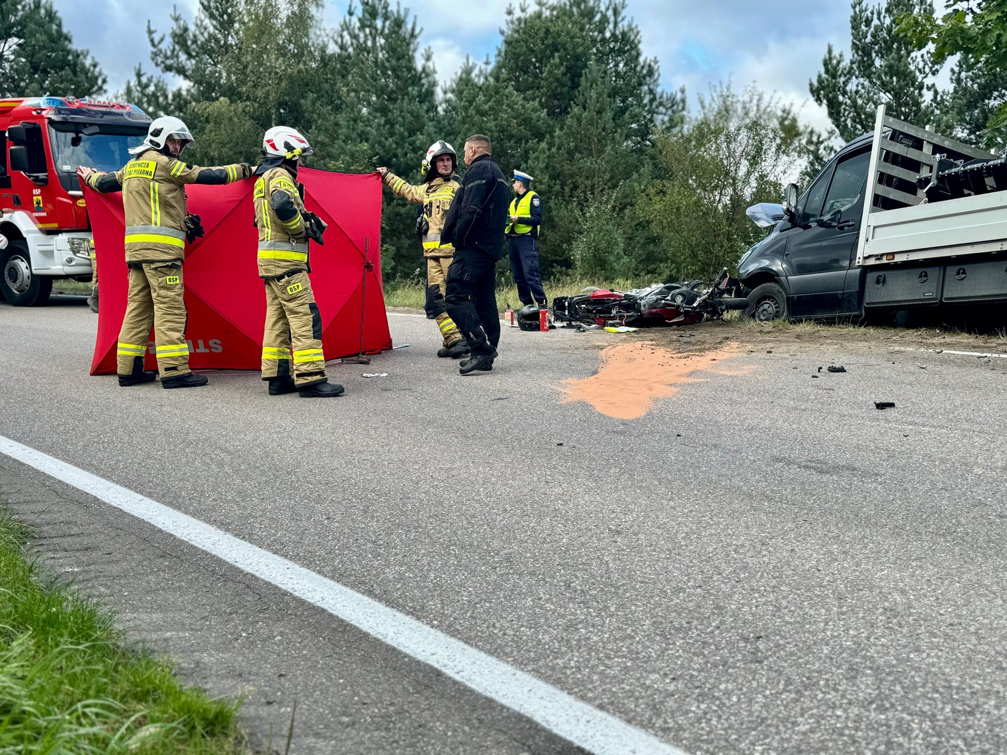 Tragiczny wypadek w powiecie bytowskim. Nie żyje 58-letni motocyklista, który zderzył się z dostawczym mercedesem (FOTO)