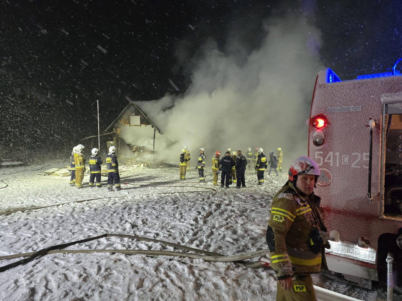 Działania strażaków polegały m.in. na odłączeniu instalacji gazowej składającej się z kilku butli propan-butan i ugaszeniu pożaru. Musieli też zburzyć strawioną ogniem, grożącą zawaleniem drewnianą konstrukcję budynku..