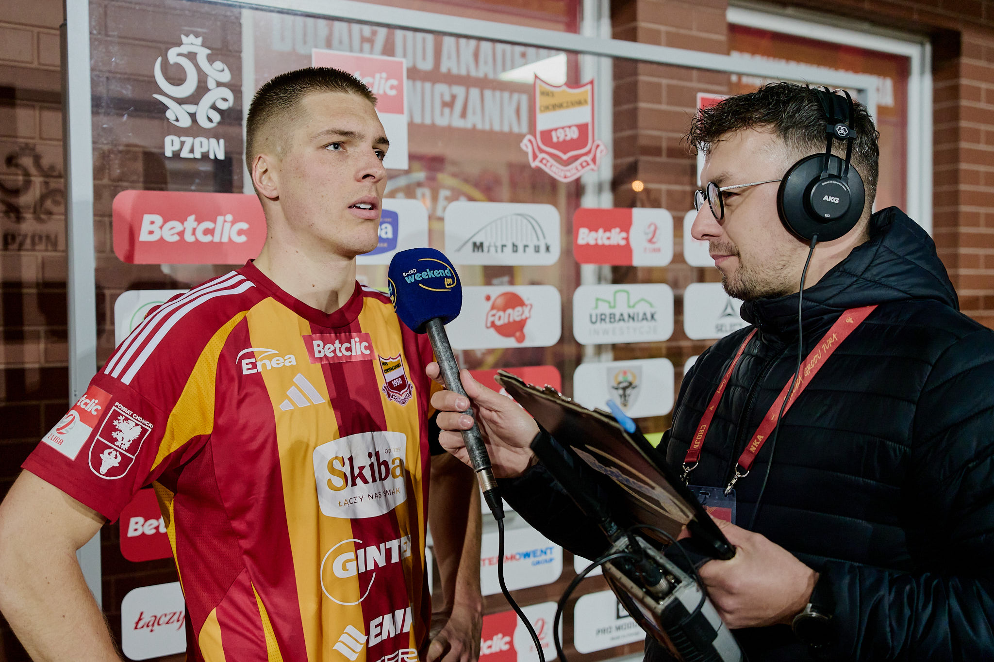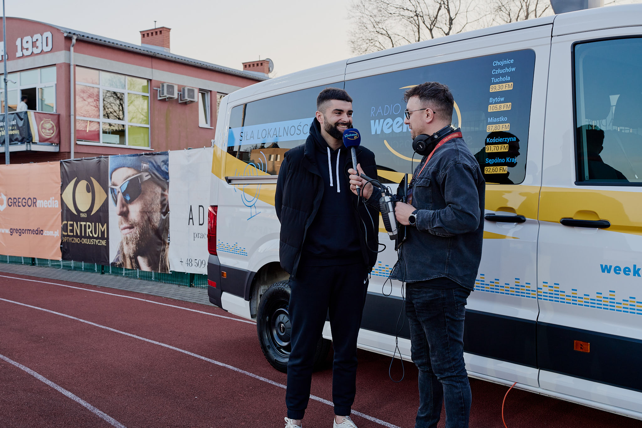 W trakcie pierwszej połowy, a więc w porze, kiedy zwykle na antenie Weekend FM słuchacie "Sportowego Weekendu", gośćmi Wojciecha Piepiorki byli prezes Chojniczanki Jarosław Klauzo oraz jej pomocnik Błażej Szczepanek. Mówili o oczekiwaniach związanych z ruszającą rundą wiosenną czy "ciśnieniu" na awans. Obaj byli również pytani o wymarzony prezent dla klubu z okazji przypadających 10 marca 95. urodzin. Włodarz MKS-u wspominał również o zimowych transferach, oceniał dotychczasową pracę trenera Damiana Nowaka i ostro skomentował tak wczesną porę meczu. Błażej Szczepanek zdradził z kolei jak czuł się w roli kapitana oraz czym Chojniczanka z wiosny będzie się różniła od tej z jesieni.