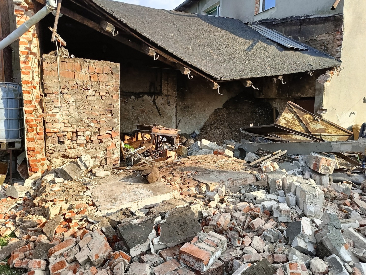 Bysław: Wybuch instalacji wodnej w piecu centralnego ogrzewania. Kotłownia zamieniła się w stertę gruzu
