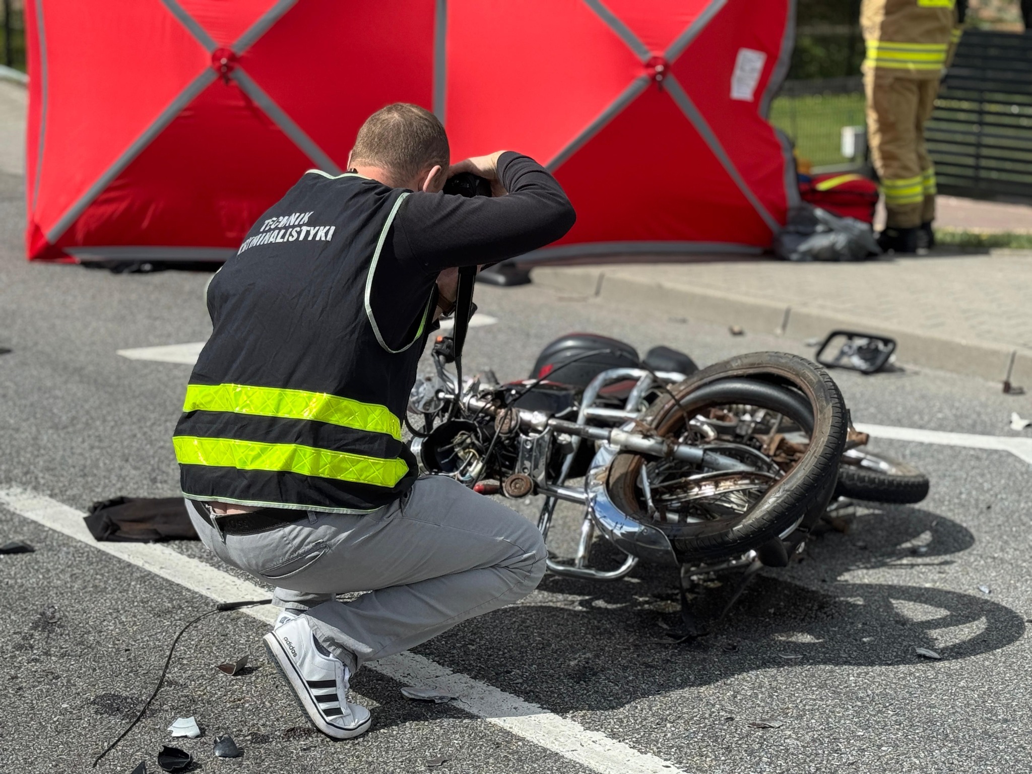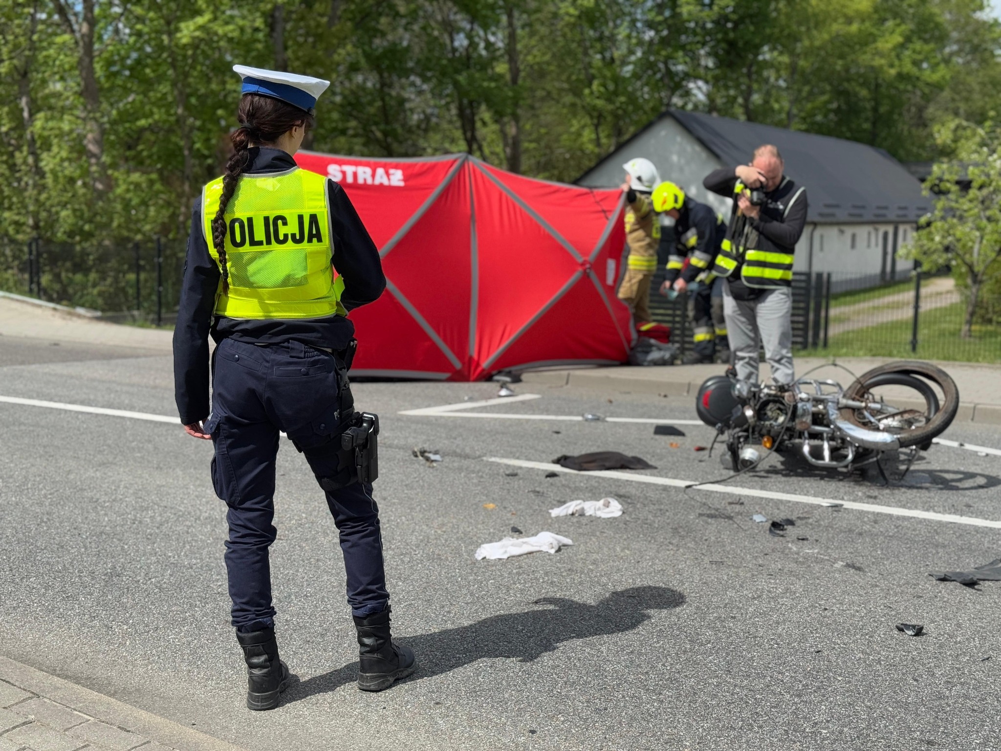 Jak wstępnie ustalili pracujący na miejscu policjanci, 61-letni kierowca motoroweru jadąc bez kasku z nieustalonych przyczyn zjechał na przeciwległy pas ruchu i czołowo zderzył się z jadącym z naprzeciwka Volkswagenem. Niestety w wyniku zderzenia kierowca jednośladu poniósł śmierć na miejscu.