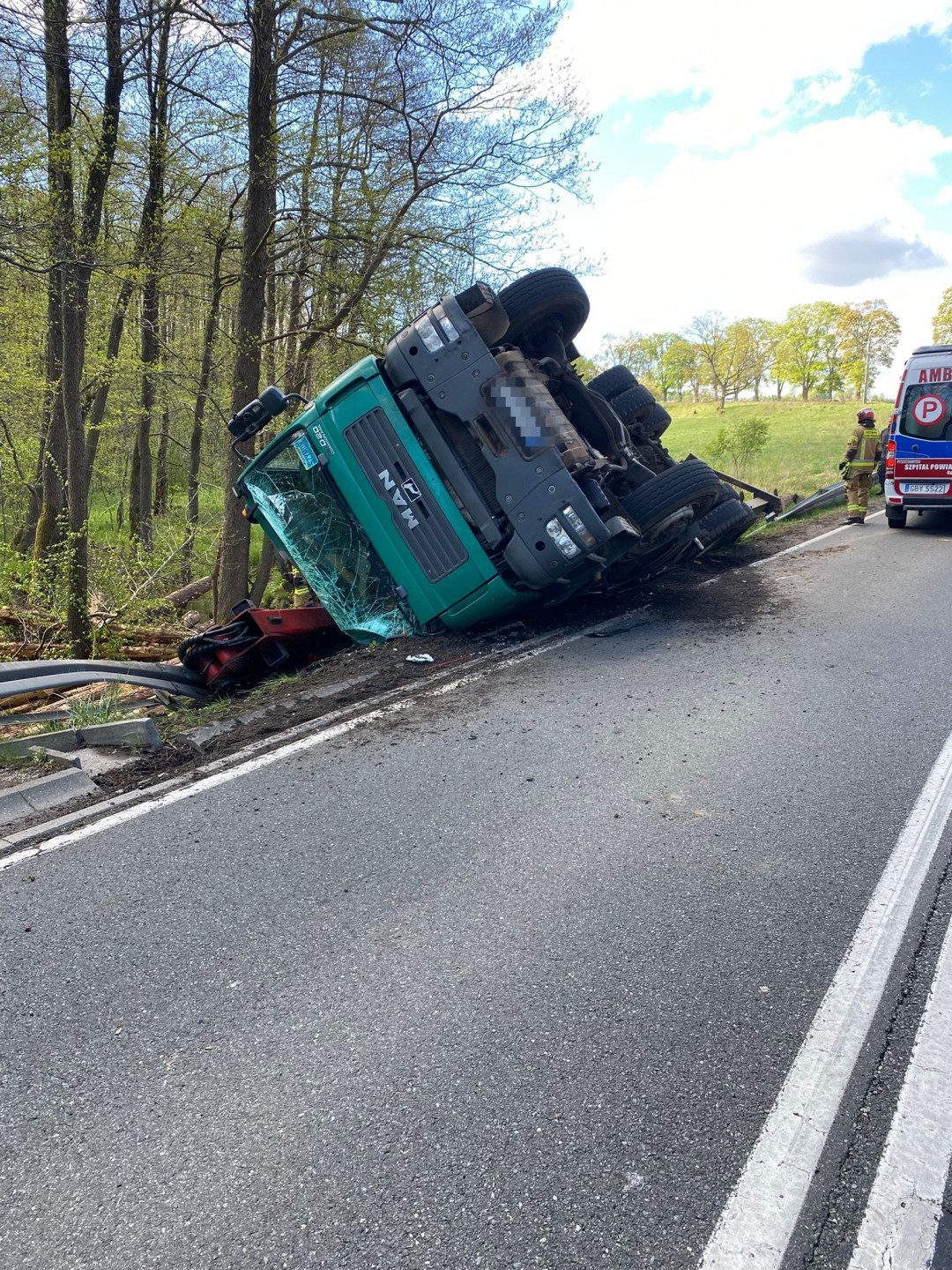 Utrudnienia na drodze krajowej 21 w Dretyniu w gminie Miastko. Po godz. 9.00 doszło tu do zdarzenia drogowego. Przewróciła się ciężarówka przewożąca drewno.