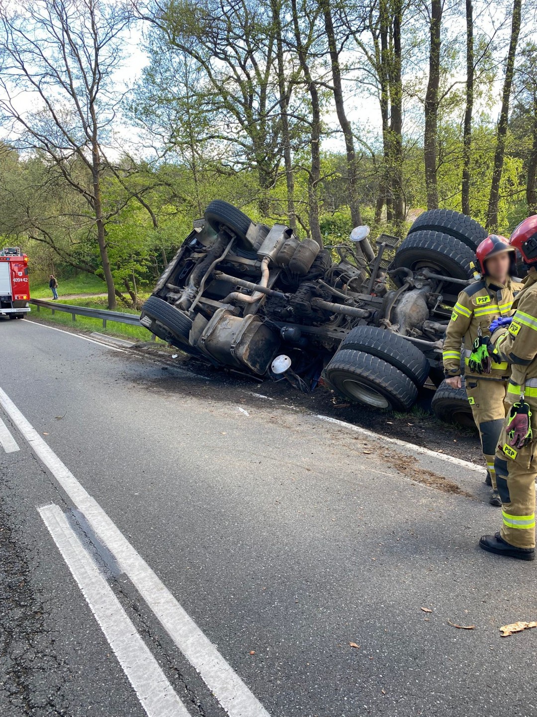 W Dretyniu na drodze krajowej 21 kierowca ciężarowego Mana z drewnem zjechał do przydrożnego rowu i wywrócił pojazd. Nikomu nic się nie stało. Ruch w tym miejscu przez kilka godzin będzie odbywał się wahadłowo. Na miejscu pracują policjanci, którzy wyjaśniają okoliczności tego zdarzenia.