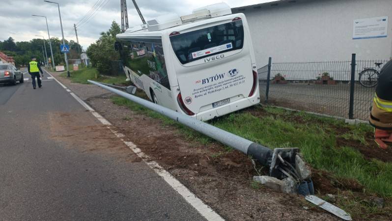 Autobusem podróżowała jedna osoba, jest to osoba poszkodowana, przytomna pod wpływem zdarzenia. Dyżurny stanowiska kierowania zadysponował na miejsce zdarzenia dwa zastępy z JRG Miastko oraz jeden zastęp OSP Słosinko. Działania na chwile obecną jeszcze trwają. Polegają na zabezpieczeniu miejsca zdarzenia w tym momencie. Również na miejscu zdarzenia służby ZRM plus jeszcze policja.
