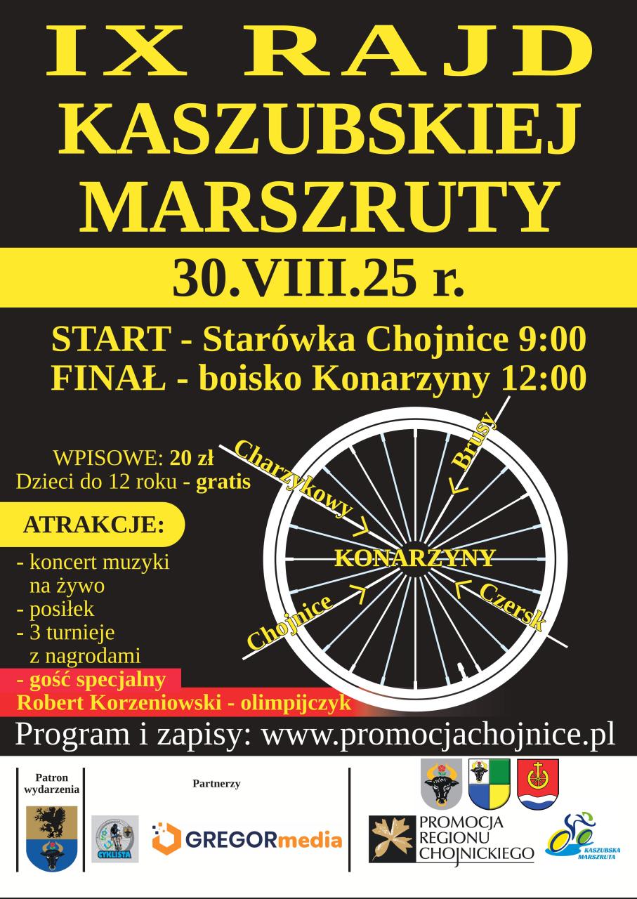 Start ze stolicy powiatu, czyli z Chojnic. I powolutku będziemy się przemieszczać poprzez ulicę Bytowską, Charzykowy, Funkę, Małe Swornegacie i finał w tym roku będzie w Konarzynach. Gospodarzem finału i wydarzenia z biesiadą, z muzyką na żywo i ze spotkaniem z gośćmi będą Konarzyny.