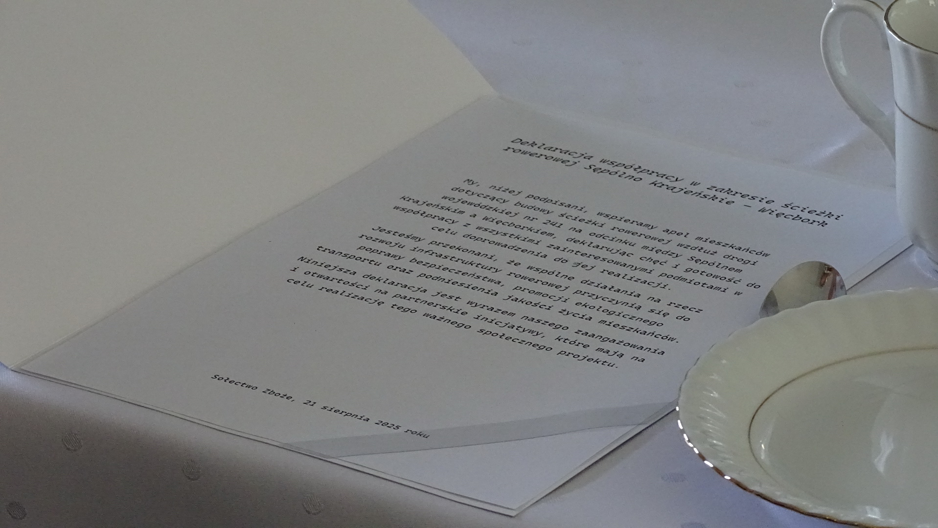 Mówił w trakcie podpisywania apelu radny powiatowy Tomasz Fifielski. Podpisania apelu w takiej formie odmówili niektórzy samorządowcy, którzy przygotowali własną deklarację wspierającą pomysły budowy ścieżki rowerowej z Sępólna do Więcborka.