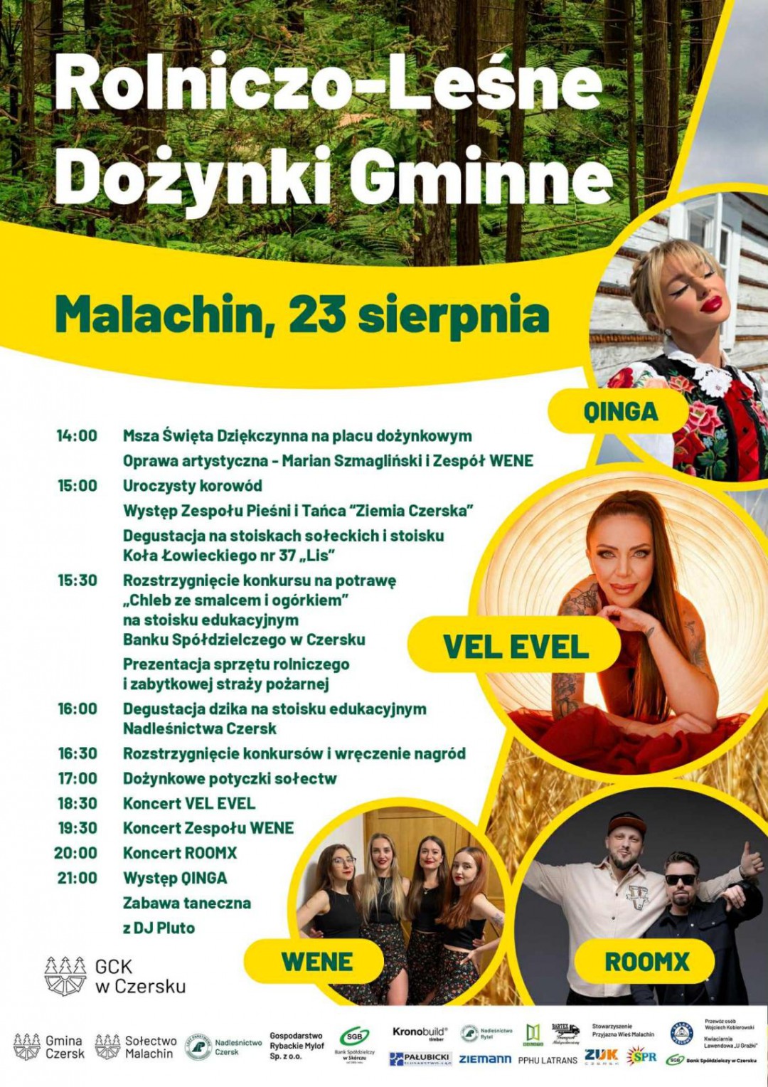 W programie są także potyczki sołeckie. Na scenie natomiast wystąpią Vel Evel, zespół Wene, RoomX oraz Quinga. Impreza zakończy się zabawą taneczną.