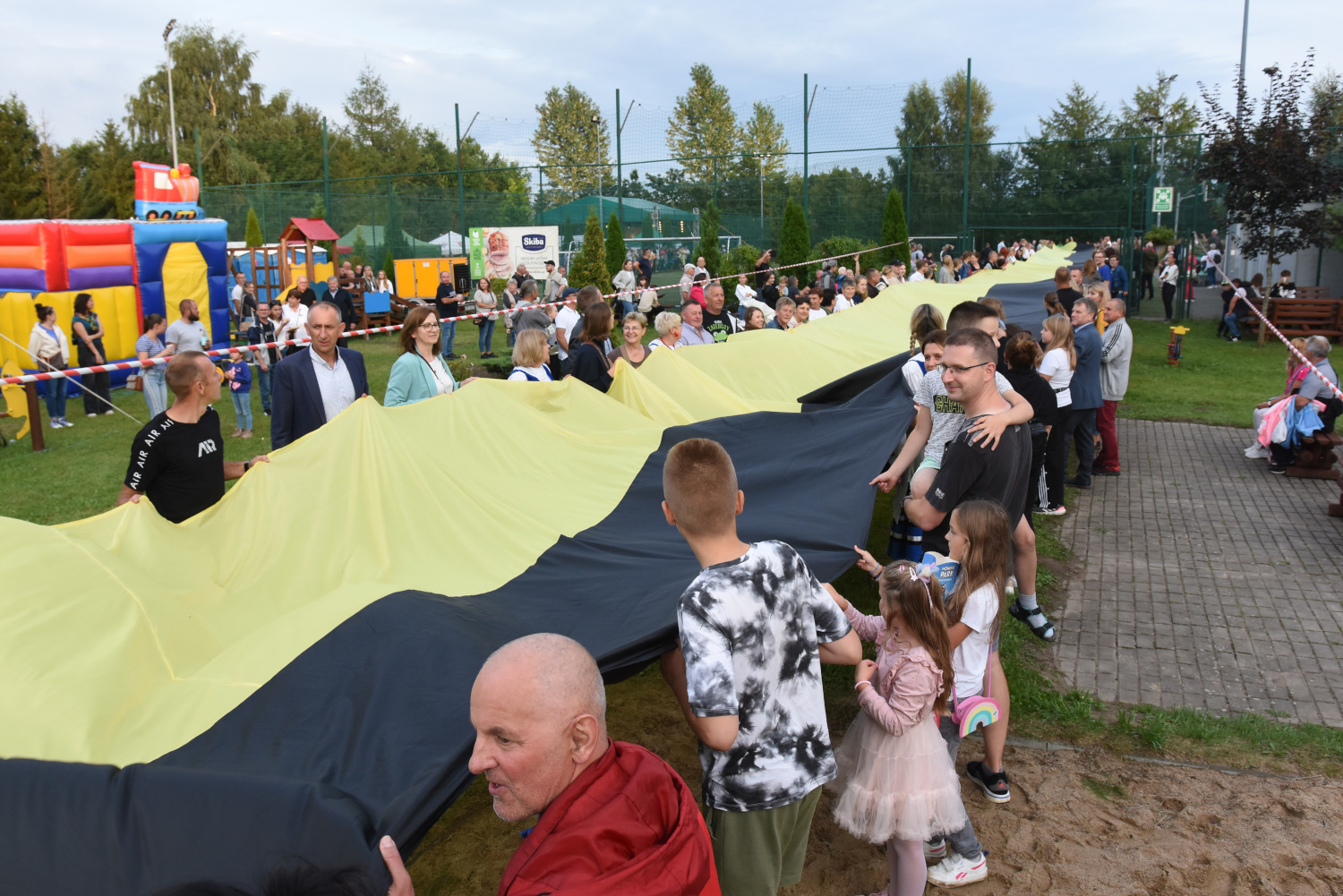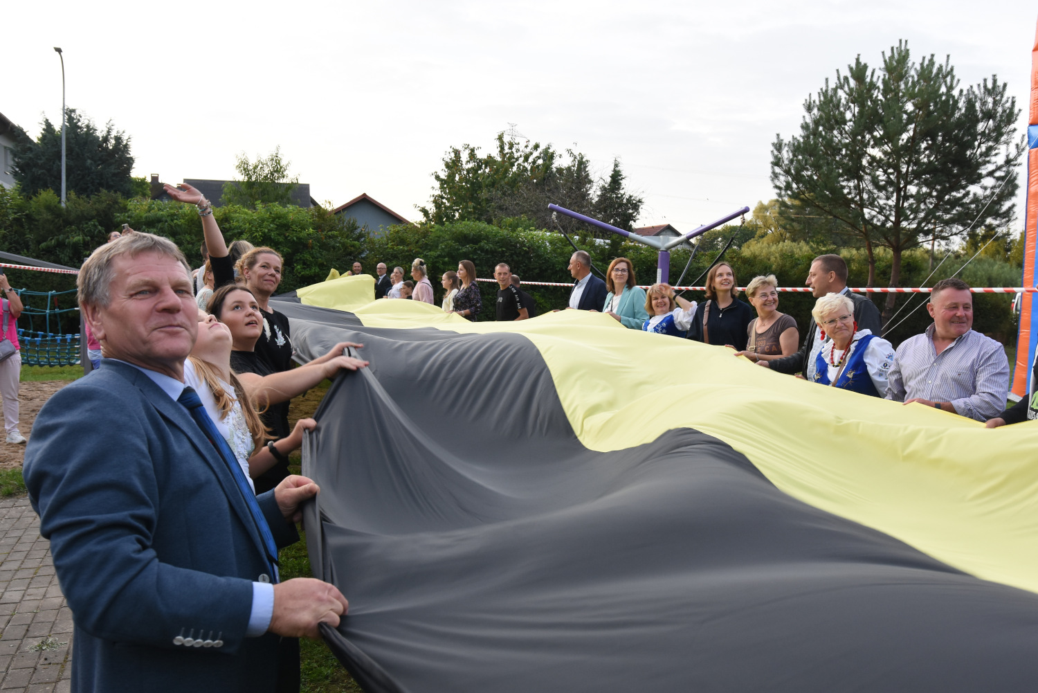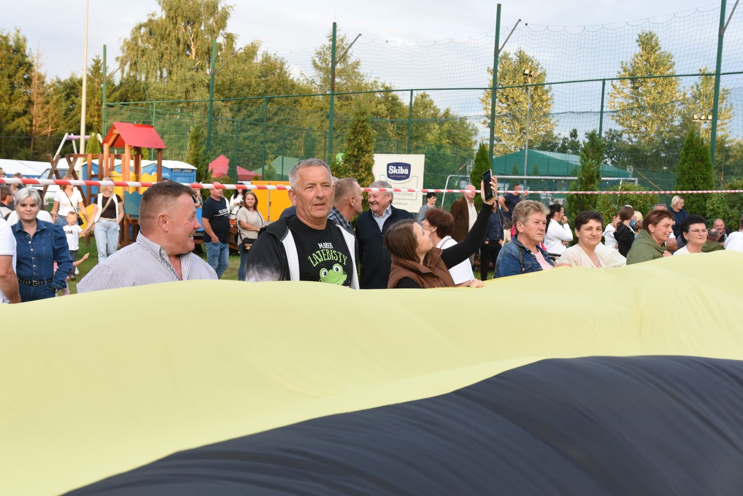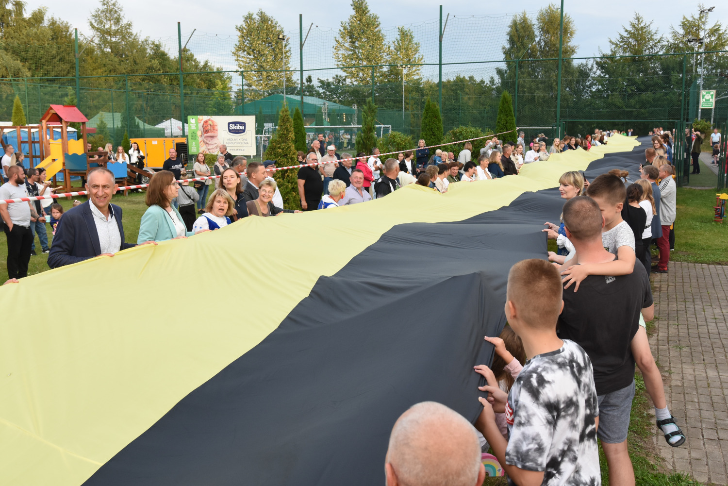 Długość miała 95 metrów i 2 metry 96 centymetrów szerokości. To miała być liczba symboliczna, ponieważ szkoła obchodziła 95-lecie. Metr flagi za rok funkcjonowania szkoły. Czy padł faktycznie? Będzie to musiało biuro rekordów zweryfikować, musimy przesłać wszelkie wytyczne, wytyczne z drona, pomiar, relacje świadków. Tak że jeżeli zaakceptują to będziemy mogli dopiero wtedy powiedzieć, że faktycznie padł rekord Polski na największą flagę kaszubską.