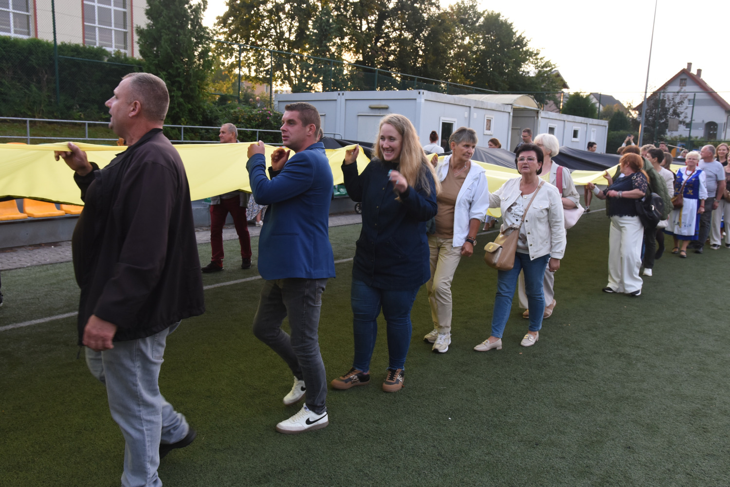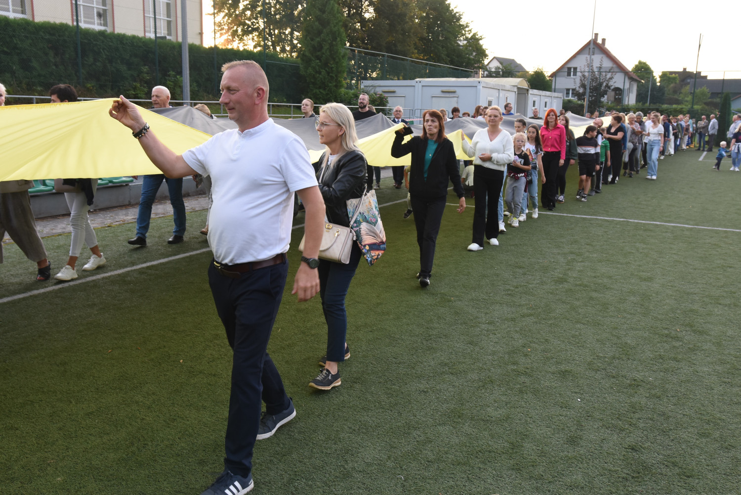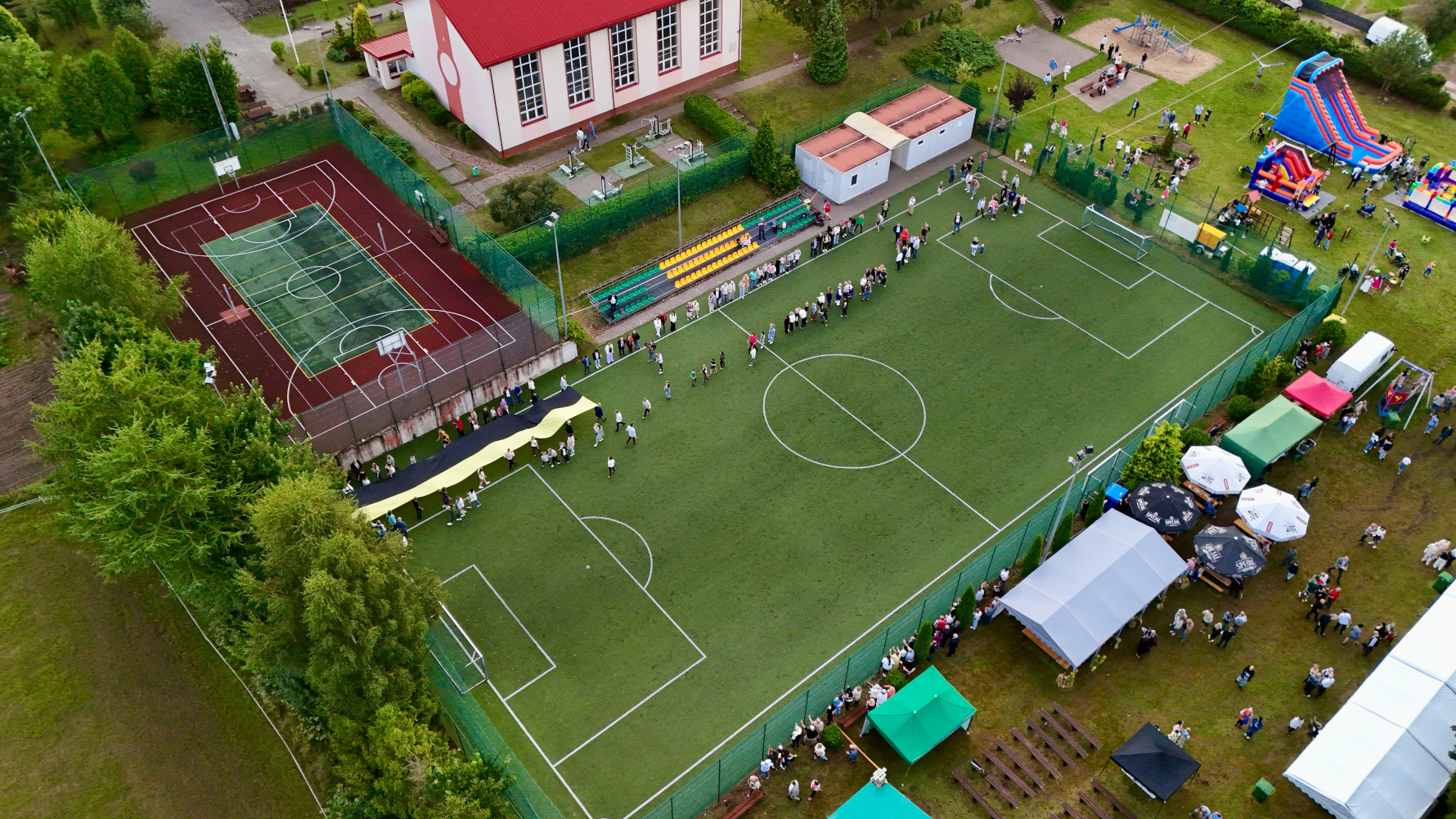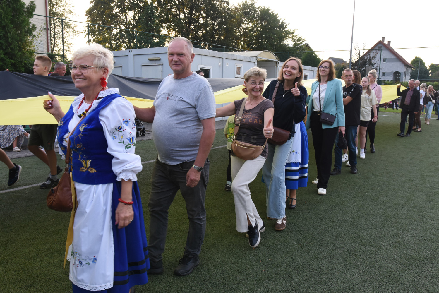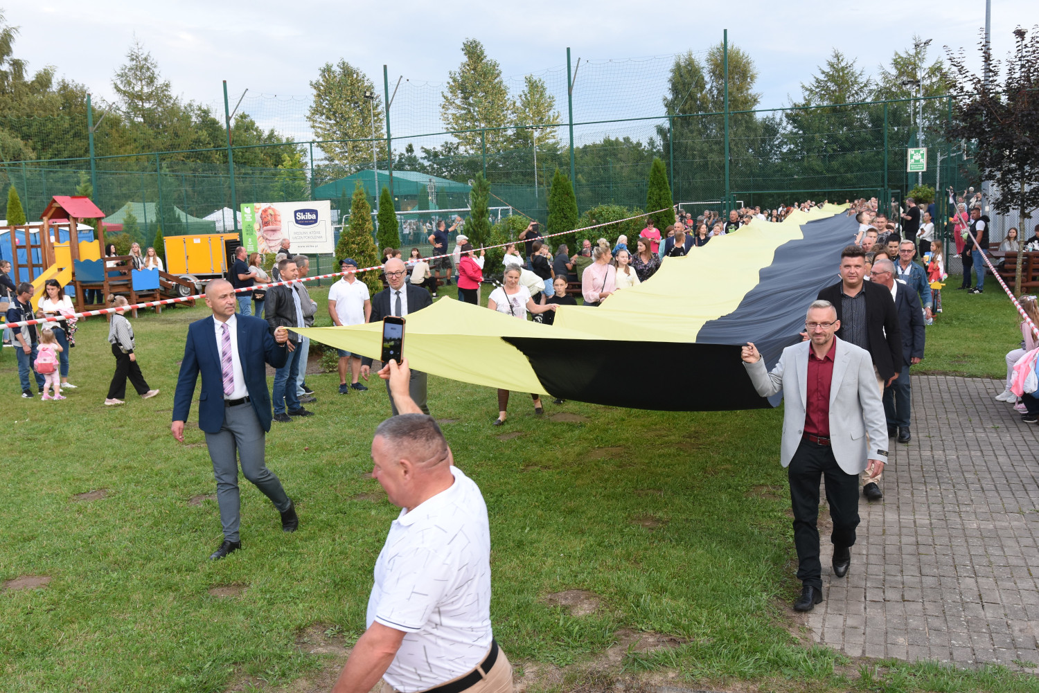 Długość miała 95 metrów i 2 metry 96 centymetrów szerokości. To miała być liczba symboliczna, ponieważ szkoła obchodziła 95-lecie. Metr flagi za rok funkcjonowania szkoły. Czy padł faktycznie? Będzie to musiało biuro rekordów zweryfikować, musimy przesłać wszelkie wytyczne, wytyczne z drona, pomiar, relacje świadków. Tak że jeżeli zaakceptują to będziemy mogli dopiero wtedy powiedzieć, że faktycznie padł rekord Polski na największą flagę kaszubską.