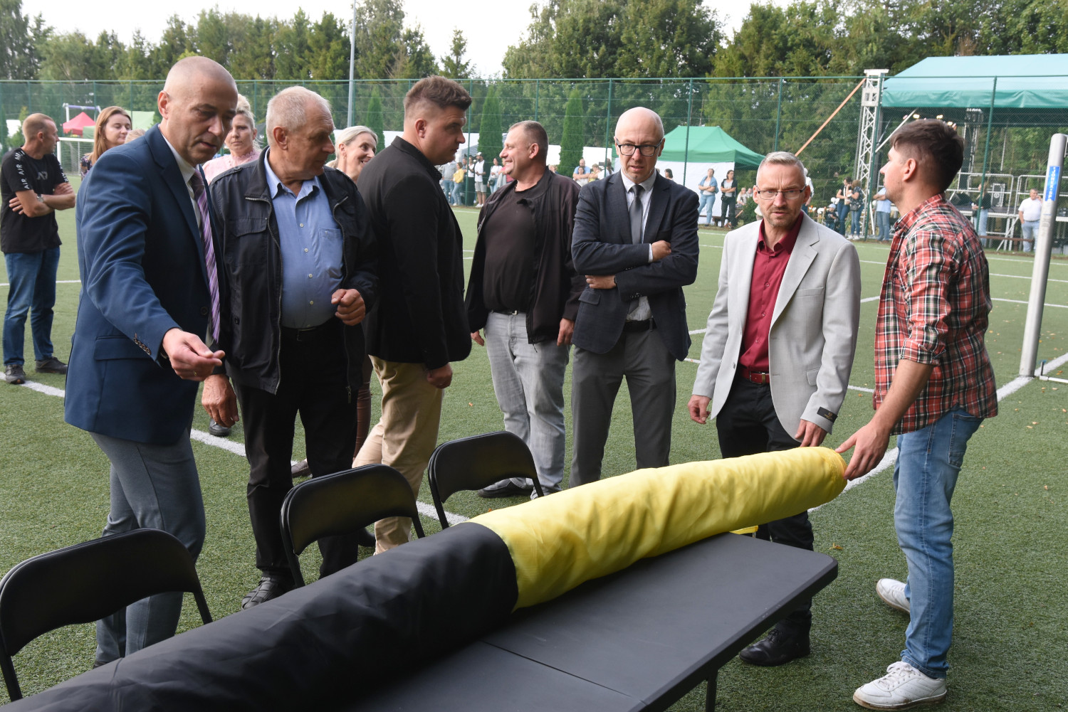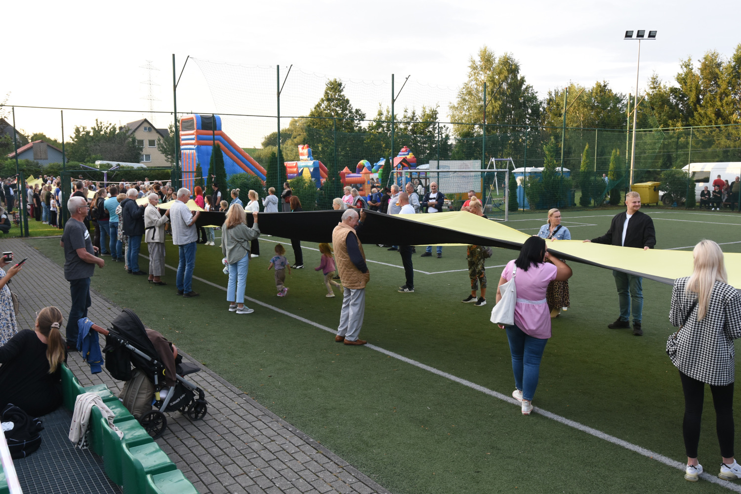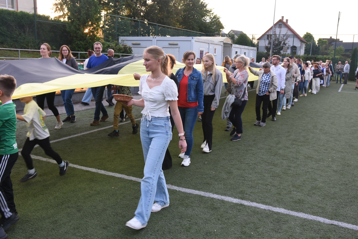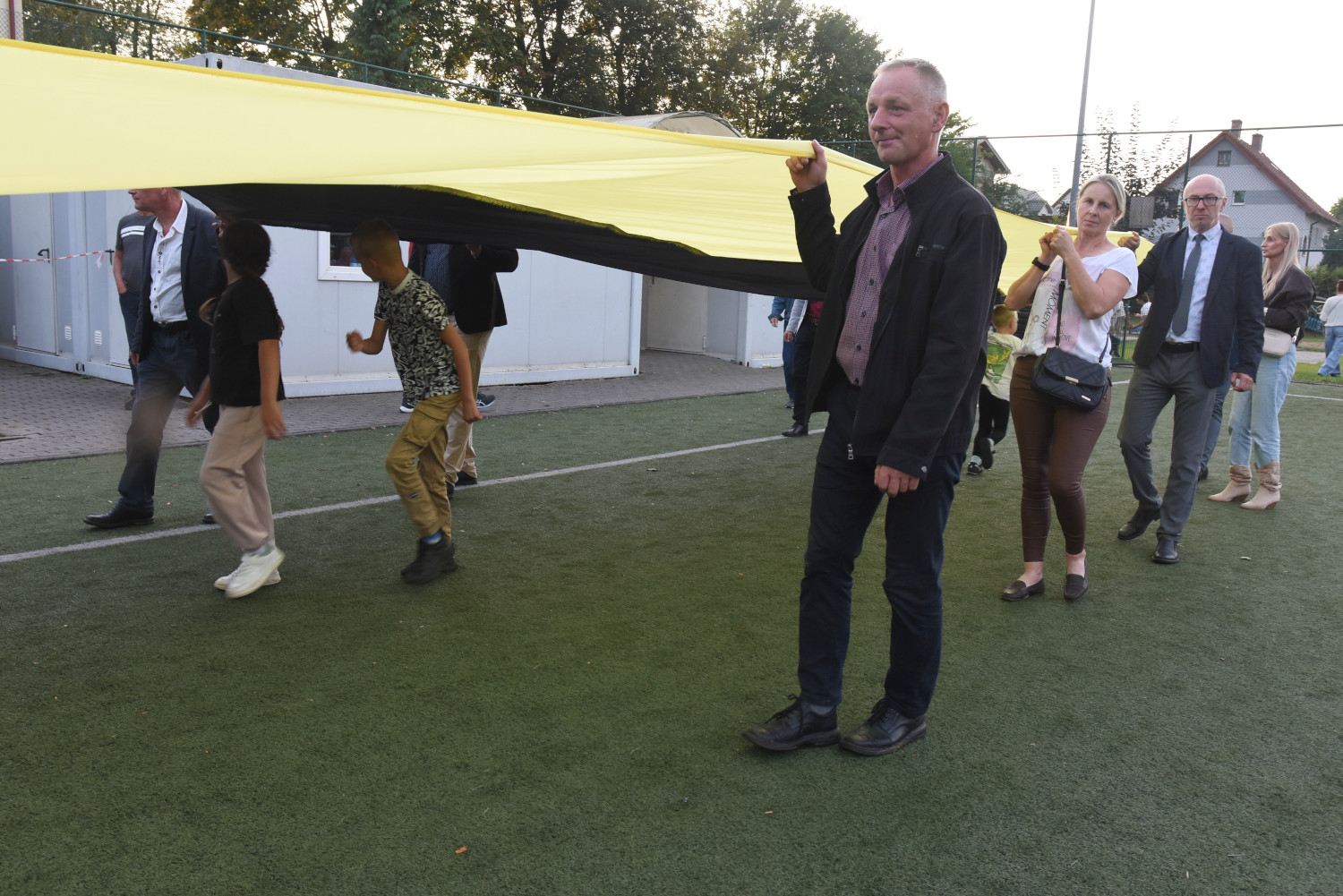 Długość miała 95 metrów i 2 metry 96 centymetrów szerokości. To miała być liczba symboliczna, ponieważ szkoła obchodziła 95-lecie. Metr flagi za rok funkcjonowania szkoły. Czy padł faktycznie? Będzie to musiało biuro rekordów zweryfikować, musimy przesłać wszelkie wytyczne, wytyczne z drona, pomiar, relacje świadków. Tak że jeżeli zaakceptują to będziemy mogli dopiero wtedy powiedzieć, że faktycznie padł rekord Polski na największą flagę kaszubską.