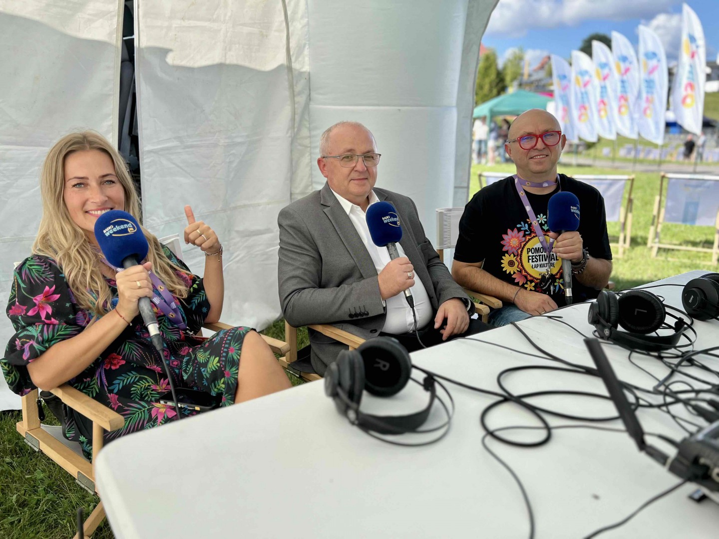 Pierwszymi gośćmi w mobilnym studiu Weekend FM byli organizatorzy wydarzenia: inicjator festiwalu Zbigniew Dróżdż, organizatorka Agnieszka Kisielewska ze Stowarzyszenia Łap Kulturę oraz burmistrz Miastka Jerzy Wójtowicz.