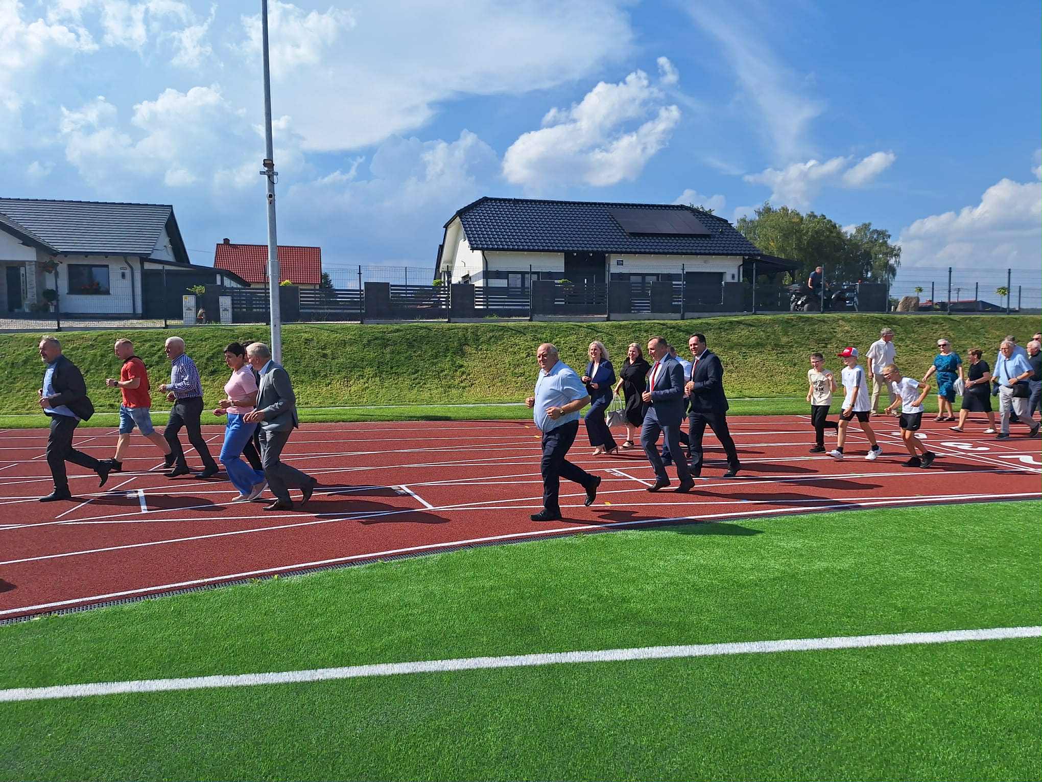 - Powstał kompleks złożony z boiska wielofunkcyjnego, jest to boisko do piłki nożnej o nawierzchni z trawy syntetycznej 45 na 90, czyli takie, które już nam pozwoli na to, żeby również nasze drużyny piłkarskie seniorskie mogły na nim prowadzić rozgrywki. Dodatkowo jest bieżnia lekkoatletyczna 300 m również o nawierzchni syntetycznej, całość terenu zagospodarowana, z trybunami.