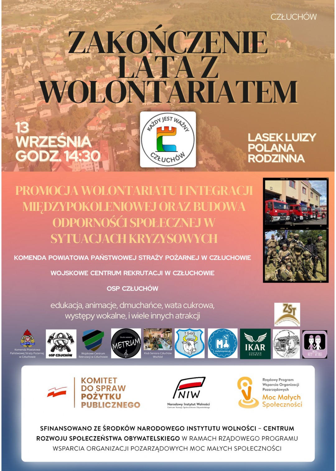 Stowarzyszenie "Człuchów jest Ważny" szykuje cykl imprez w całym powiecie człuchowskim. Zdobyło wsparcie Narodowego Instytutu Wolności na projekt "MWS - Międzypokoleniowy Wolontariat Spontaniczny" i organizuje festyny rodzinne - z dmuchańcami, zabawami dla dzieci, grillem czy występami artystycznymi. Ma partnerów, w tym strażaków czy wojskowych.