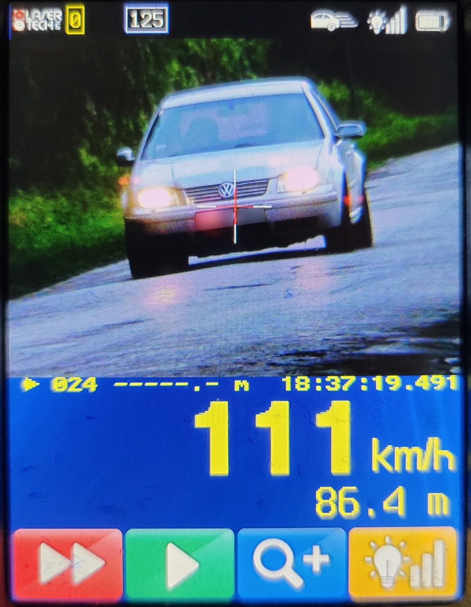 Szybkość auta została zmierzona miernikiem wyposażonym w rejestrację obrazu. Urządzenie pomiarowe wskazało, że pojazd pędzi 111 km/h, w miejscu, gdzie obowiązuje ograniczenie do 50km/h. Za popełnione wykroczenie funkcjonariusze zatrzymali 24-latkowi prawo jazdy i ukarali go mandatem karnym w kwocie 4000 zł. Do jego konta dopisali również 14 punktów karnych.