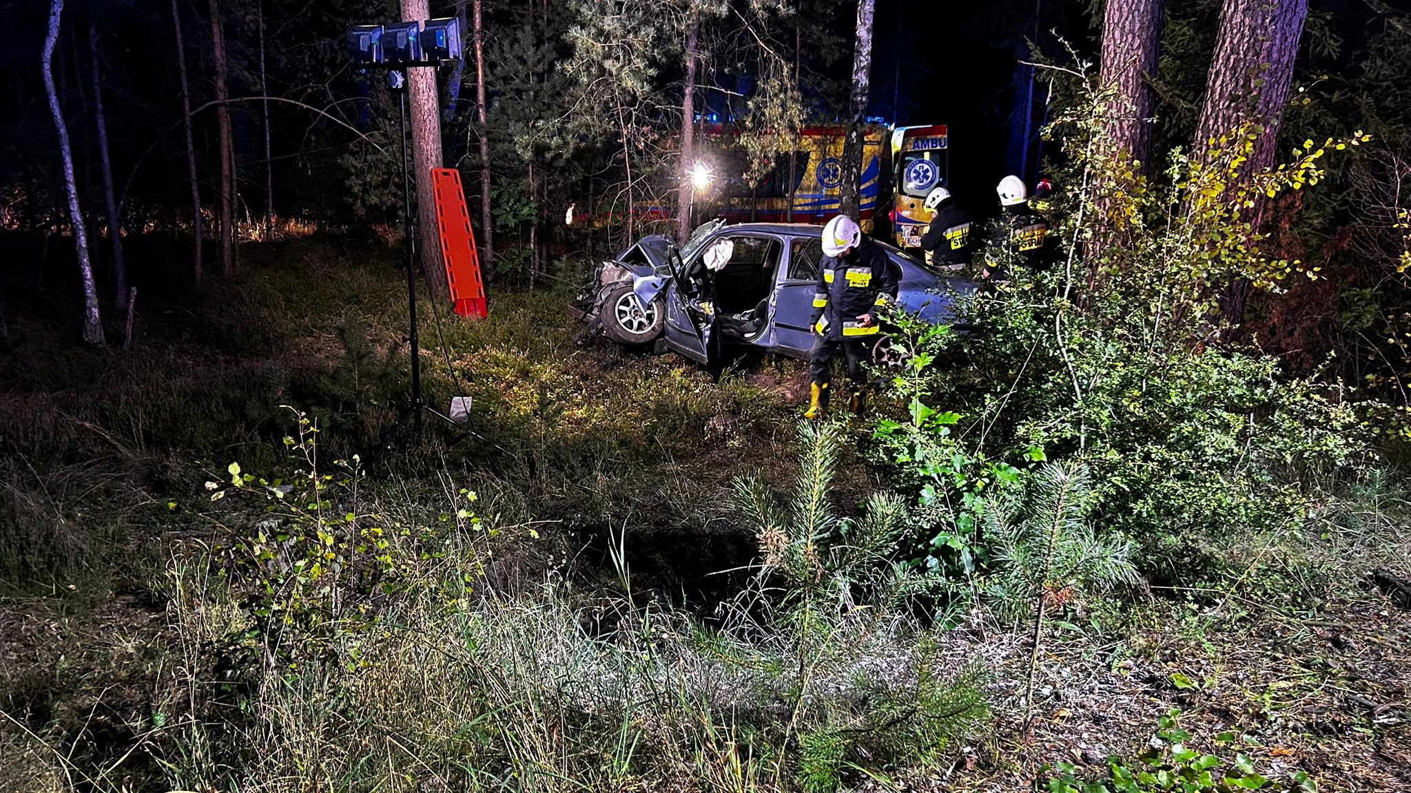 Przed 22.00 na wysokości mostu nad Wielkim Kanałem Brdy osobowy volkswagen passat uderzył tu w przydrożne drzewo. Autem podróżowało dwóch mężczyzn. Kierowca – 44-letni mieszkaniec Chojnic - został przetransportowany karetką do Rytla, skąd do szpitala zabrał go śmigłowiec LPR-u. Pomimo długiej resuscytacji, na miejscu zginął natomiast młodszy z mężczyzn.