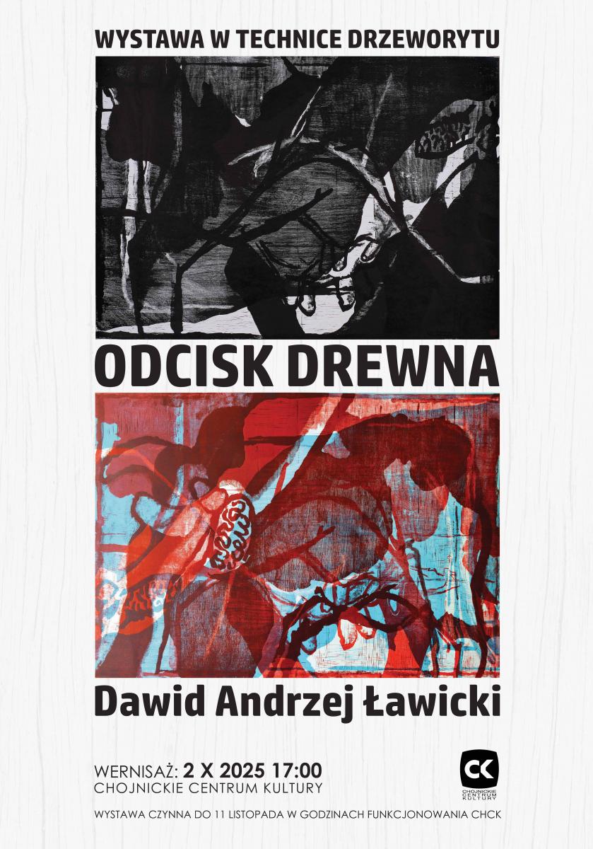 "Odcisk drewna" to tytuł wystawy, którą od jutra (2.10) będzie można oglądać w Chojnickim Centrum Kultury. Jej autorem jest płocki artysta Dawid Ławicki, a prezentowane prace to głównie drzeworyty. Część z nich to wspomnienia twórcy.