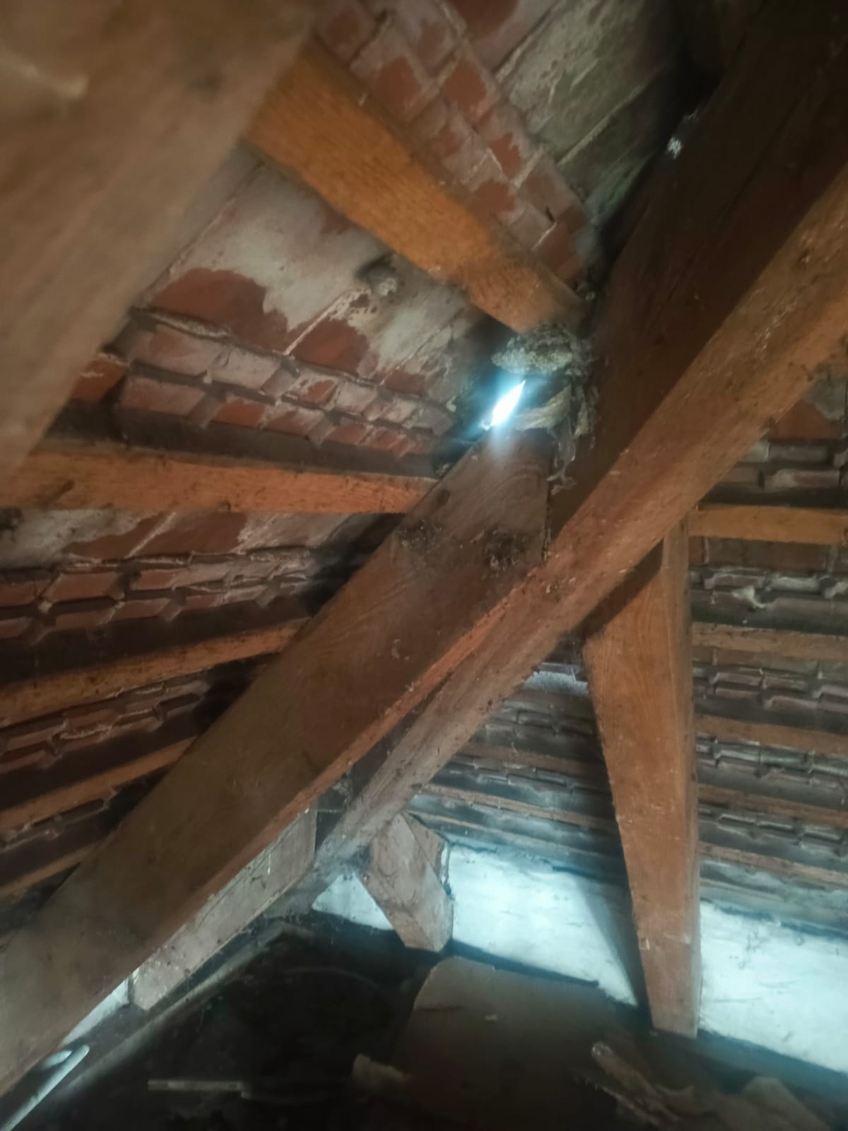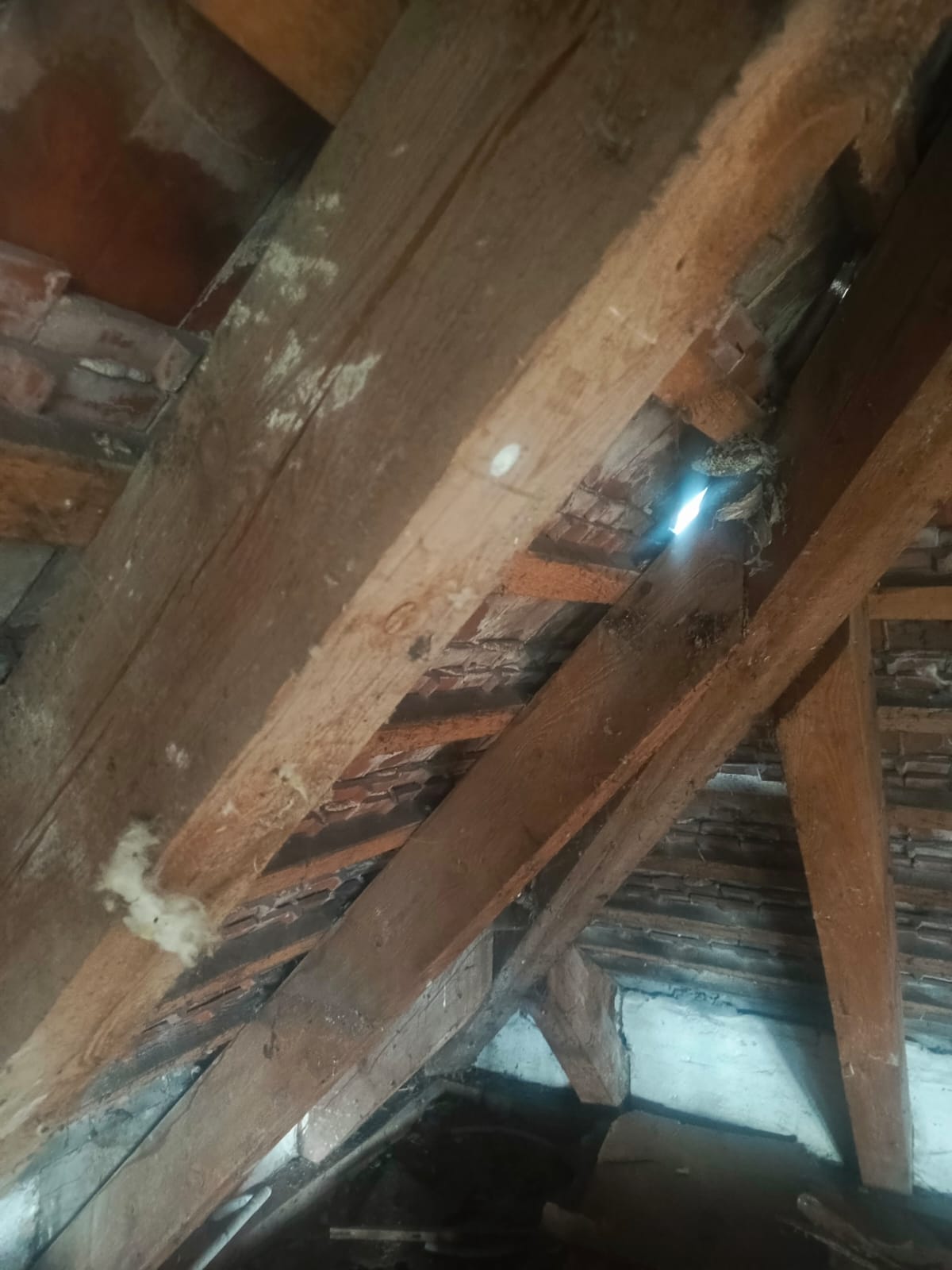 Po zdjęciu ocieplenia na poddaszu uwidoczniła się potrzeba remontu dachu, który ten remont tak naprawdę nie przewidywał. Nie wiem co tam będzie z tym dalej, bo uważam że jeśli w środku zrobimy cudownie, a tak będzie po tym projekcie, a będzie zaciekać to, jest to słabe nie.
