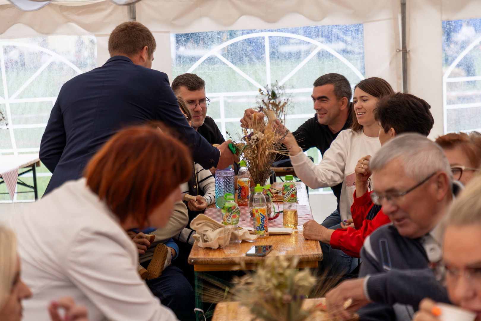 Na takim spotkaniu dziękujemy za udział w tych dożynkach, za przygotowanie wspaniałych wieńców, za wystawienie stoisk dożynkowych. Gmina Sępólno Krajeńskie oprócz podziękowań też przekazuje talony, dzięki którym koła gospodyń wiejskich będą mogły sobie uzupełnić swoje naczynia, swój sprzęt, swoje artykuły gospodarstwa domowego.