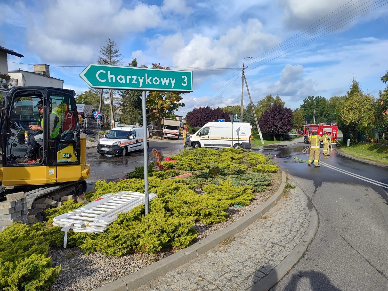 Uszkodzenie gazociągu średniego ciśnienia w Chojniczkach w gminie Chojnice. Do zdarzenia doszło dziś na głównym skrzyżowaniu ok. godz. 13.30. Na miejscu są już służby. Ewakuowano także 9 mieszkańców pobliskich domów.
