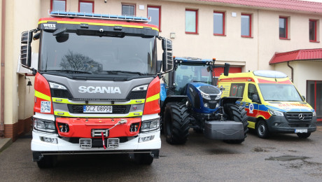 Nowe pojazdy za blisko 3,5 mln zł dla służb w Człuchowie: wóz dla strażaków, karetka dla szpitala i ciągnik dla drogowców (FOTO)