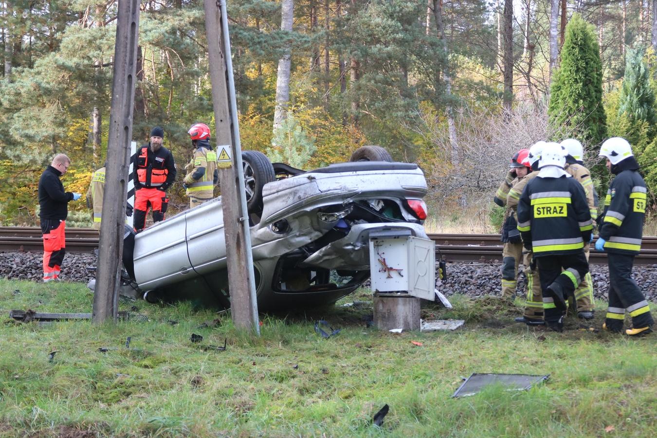 Tragiczny w skutkach wypadek w gminie Czersk. Samochód uderzył w drzewo przy tzw. koziej szosie. Nie żyje 39-letni pasażer (FOTO, AKTUALIZACJA)