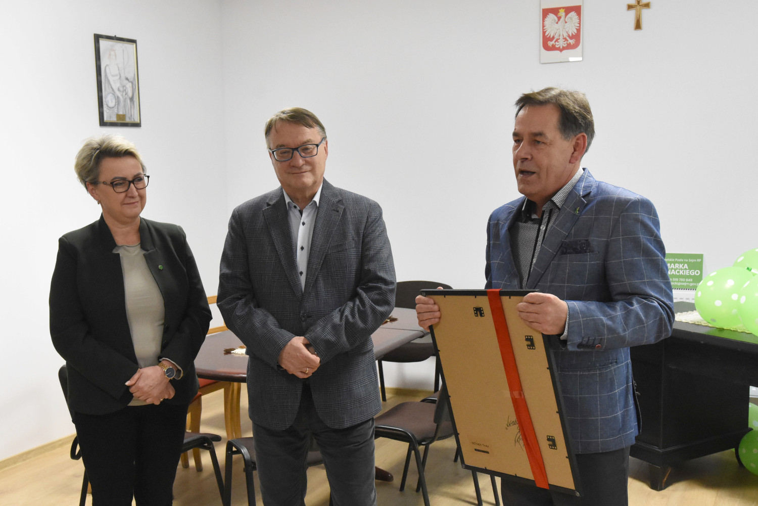 Nie tylko klasyczne biuro poselskie, ale także lokalne centrum działań w sprawie Via Pomeranii i Zielonego Okręgu Przemysłowego. Tak o nowej lokalizacji swojego chojnickiego biura mówi poseł PSL-Trzeciej Drogi Marek Biernacki. To znajduje się przy ulicy Młyńskiej w Chojnicach. Parlamentarzysta dzieli je z Agnieszką Kłopotek i Stanisławem Lamczykiem. Nowe pomieszczenia zostały otwarte dzisiaj (28.10) w obecności Marka Biernackiego, Agnieszki Kłopotek i lokalnych samorządowców. Biuro poświęcił ksiądz dziekan Jacek Dawidowski.