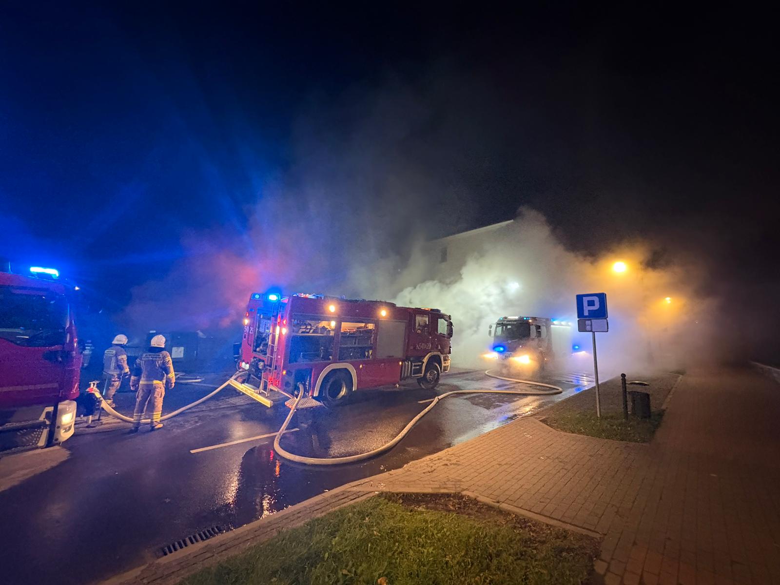Nocny pożar na ulicy Chopina w Tucholi. Ewakuowano pobliską kamienicę, na szczęście nikt nie ucierpiał (FOTO, AKTUALIZACJA)