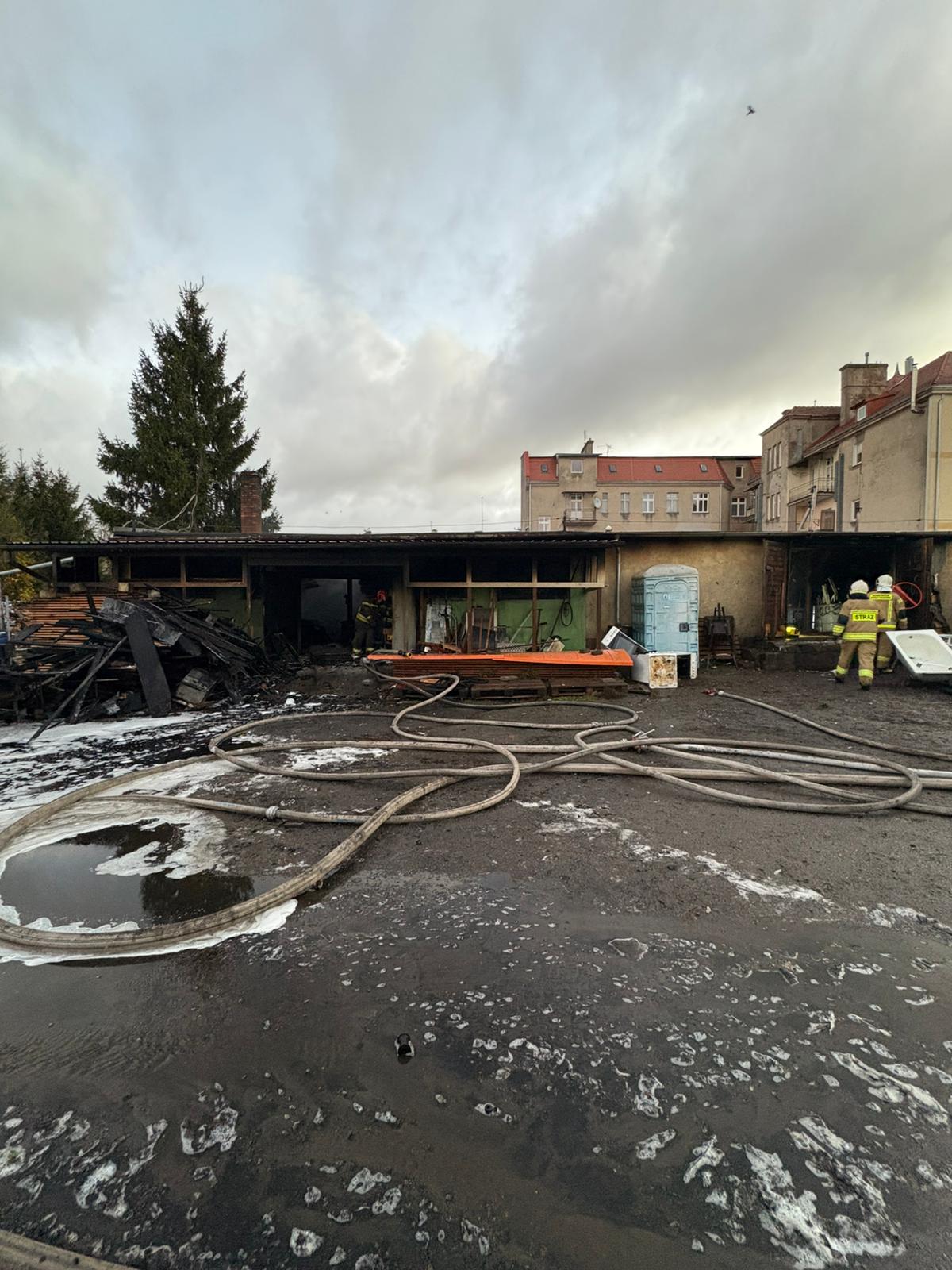 Palił się tu budynek, w którym mieści się stolarnia i skup złomu.