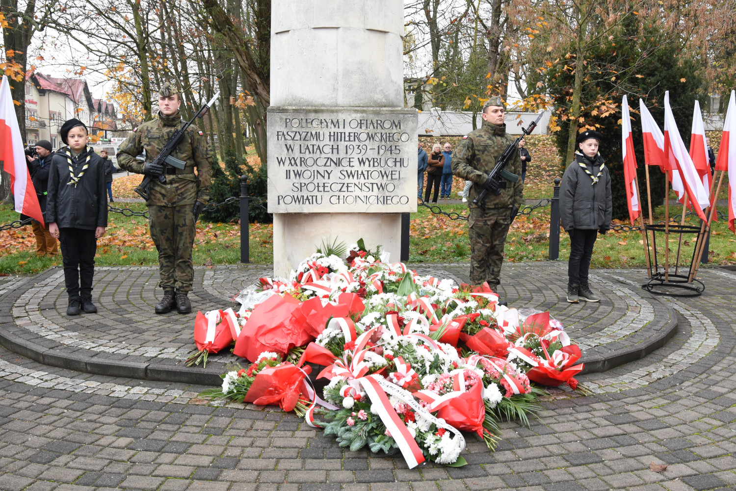 Delegacje złożyły kwiaty przy Pomniku Ofiar Faszyzmu oraz Pomniku Chrystusa Króla. Uroczystość miała wojskową oprawę. Zadbali o nią żołnierze 34 Chojnickiego Batalionu Radiotechnicznego. Odczytano Apel Pamięci i oddano salwę honorową.
