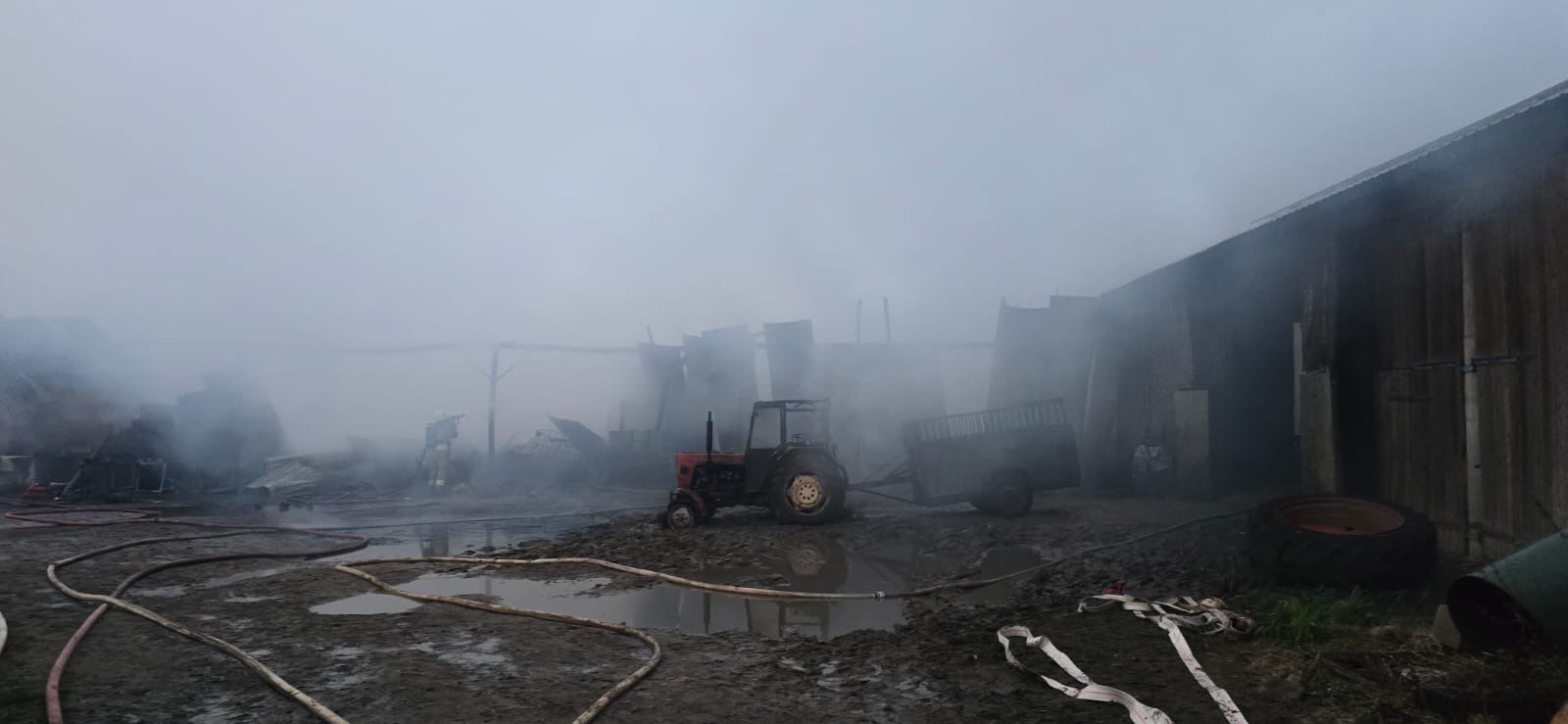 Jak dodaje, nie ma osób poszkodowanych, ale wstępnie wiadomo, że są straty w inwentarzu. Akcja gaśnicza nadal trwa. Utrudnia ją fakt, że konstrukcja budynku grozi zawaleniem.