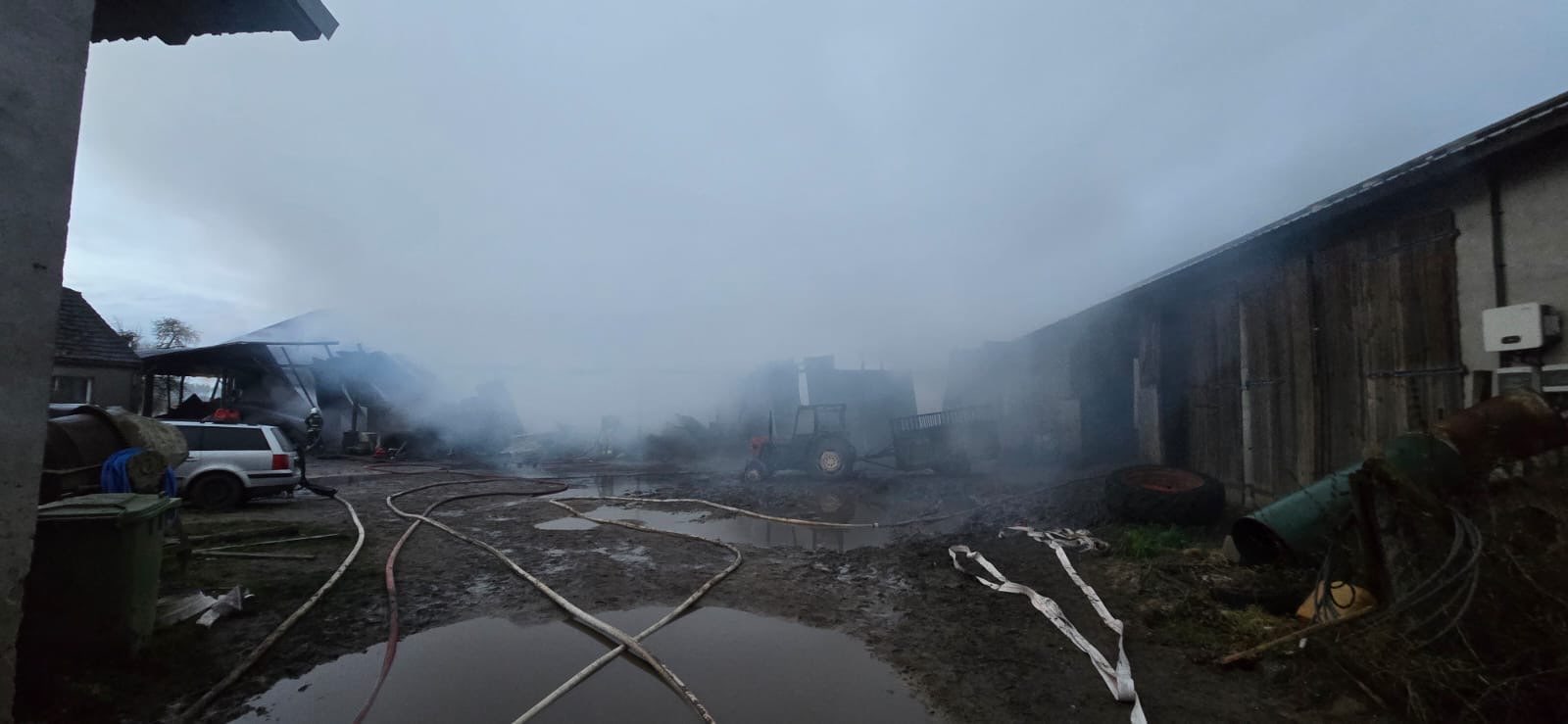 Kilkanaście zastępów straży pożarnej z dwóch powiatów gasi pożar budynku inwentarskiego w gminie Karsin. Ogień pojawił się po godz. 4.00. Zagrożony był budynek mieszkalny.