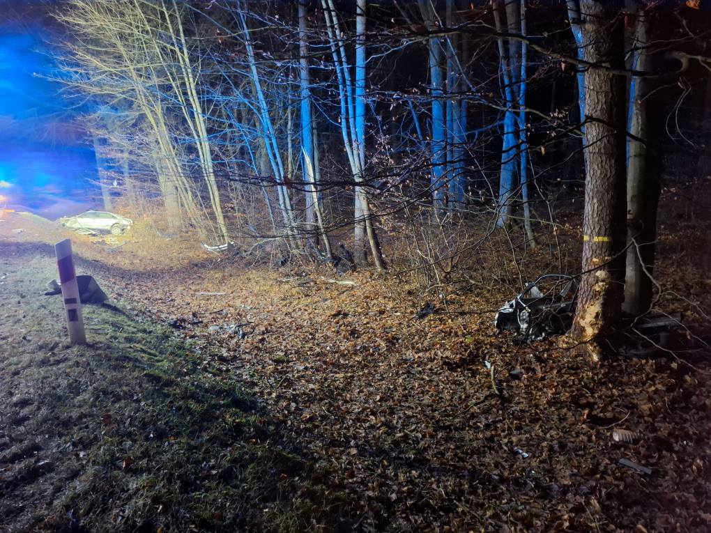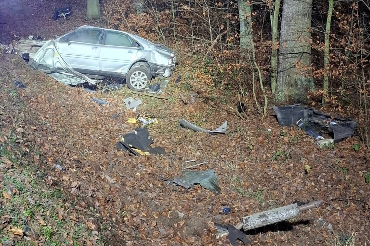Jak wstępnie ustalili policjanci, 26-letni kierujący volvem na prostym odcinku drogi stracił panowanie nad pojazdem i uderzył w drzewo. Badanie wykazało, że miał ponad promil alkoholu w organizmie. Z obrażeniami ciała został przetransportowany do szpitala.
