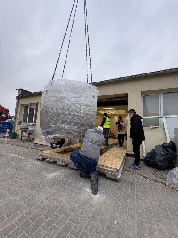 Kluczowy etap instalacji rezonansu magnetycznego w tucholskim szpitalu zakończony. Operacja odbyła się dziś (24.11) i - ze względu na rozmiary oraz masę urządzenia - była nadzorowana przez specjalistów i wspomagana ciężkim sprzętem.
