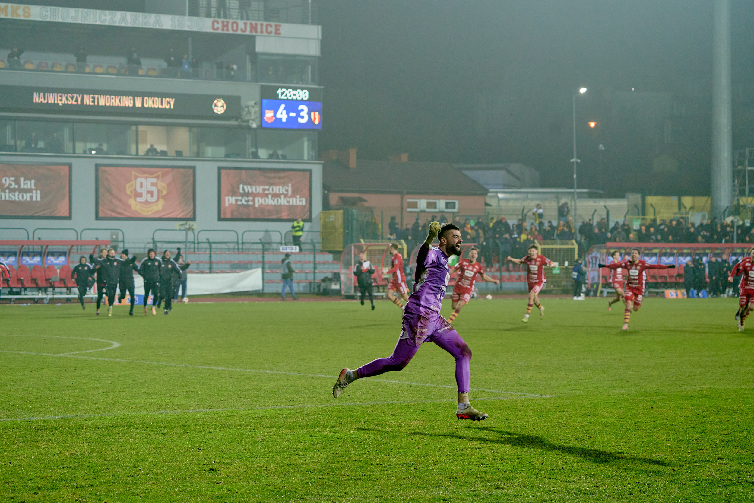 Sensacyjna wygrana Chojniczanki! Nasz drugoligowiec awansował do ćwierćfinału Pucharu Polski, wyrzucając z rozgrywek ekstraklasową Koronę Kielce. Decydujące w dzisiejszym (4.12) spotkaniu były rzuty karne, w których chojniczanie byli bezbłędni i wygrali 4:3.