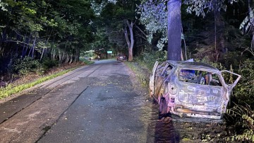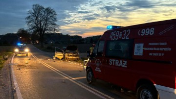 Nieprzytomny kierowa wyciągnięty z płonącego samochodu. Poważny wypadek na DW 226 w Hornikach Dolnych, w gminie Nowa Karczma