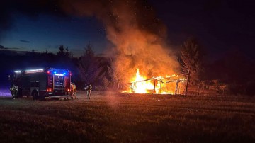 Pożar wiaty garażowej i samochodu w gminie Nowa Karczma