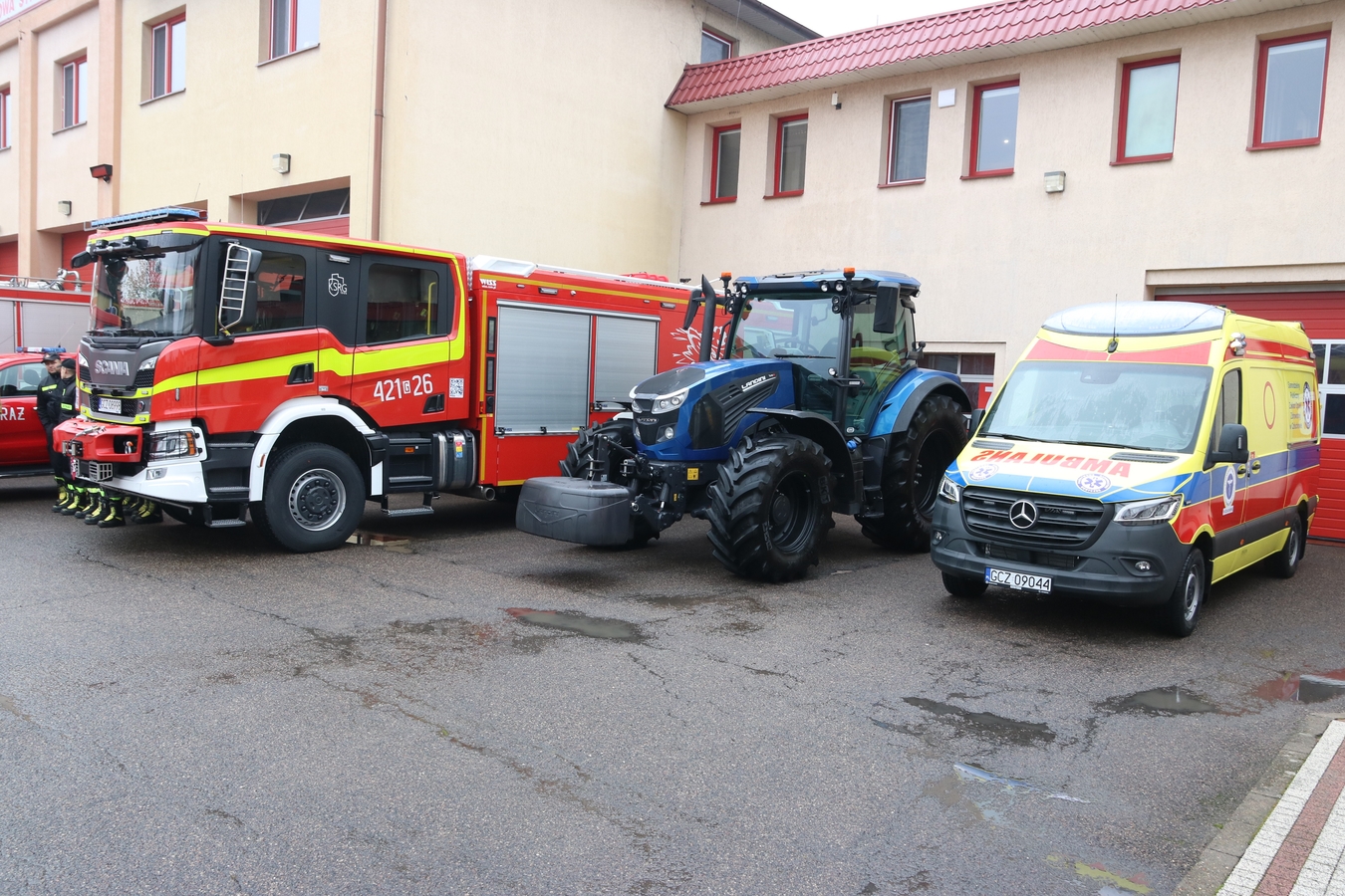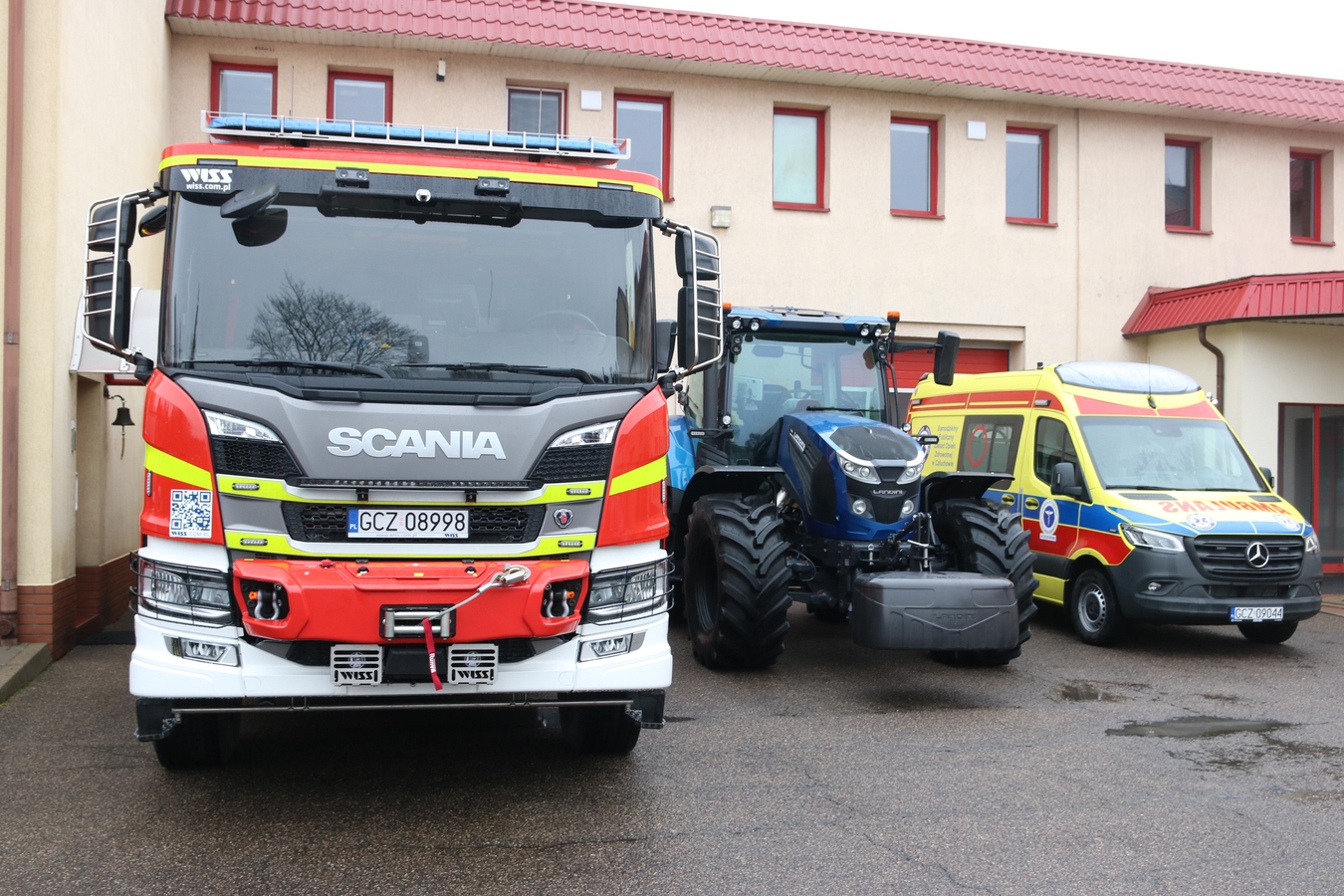 Nowe pojazdy za blisko 3,5 mln zł dla służb w Człuchowie: wóz dla strażaków, karetka dla szpitala i ciągnik dla drogowców (FOTO)