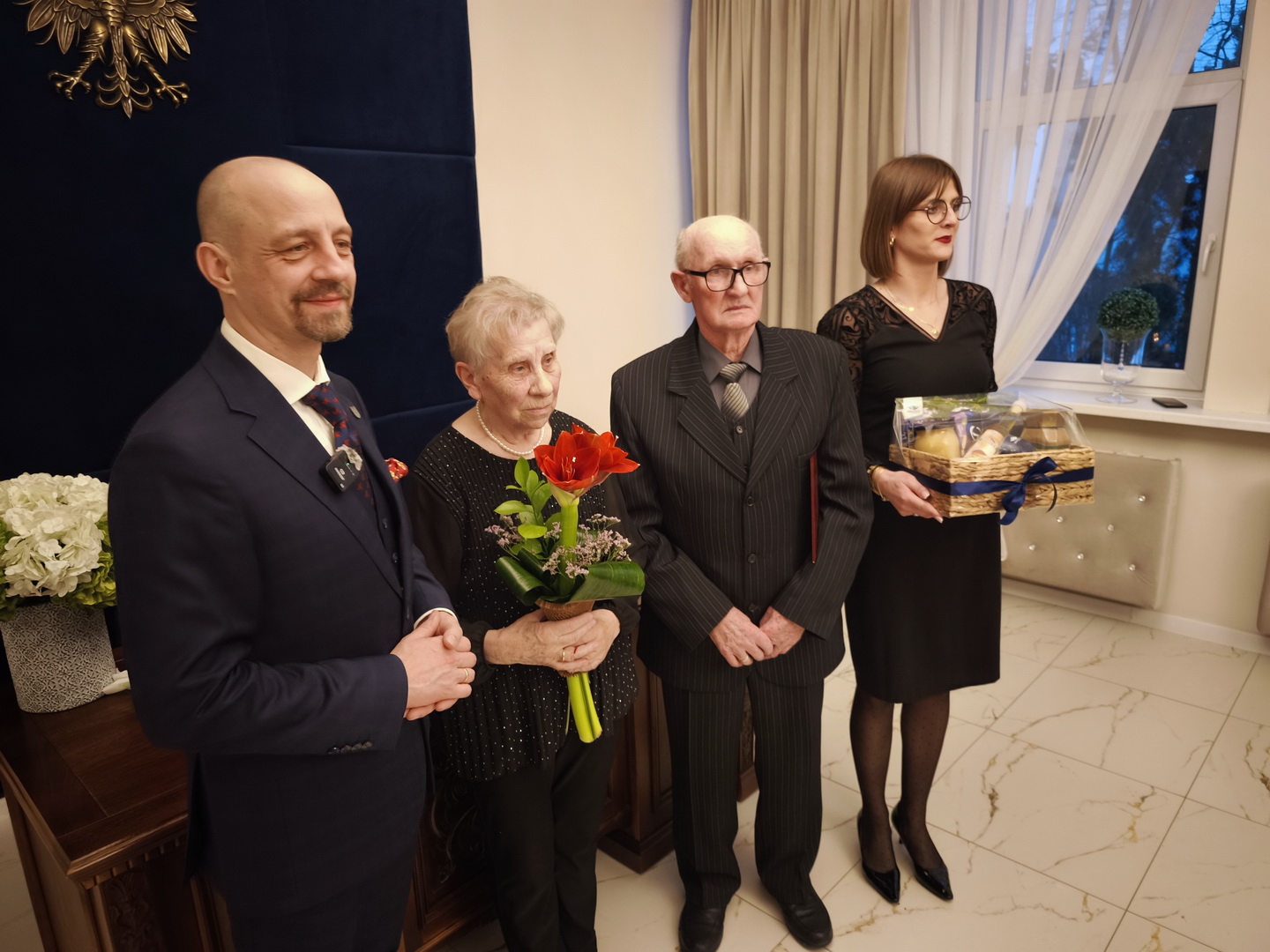 Szanowni państwo, dostojni jubilaci. Cieszę się bardzo, że w tak wyjątkowym momencie możemy się spotkać w Urzędzie Stanu Cywilnego w Więcborku świętując z państwem przepiękny jubileusz 60-lecia pożycia małżeńskiego. To dla nas wielki zaszczyt, że możemy dzisiaj Państwa gościć i dzielić się z wami waszą radością.