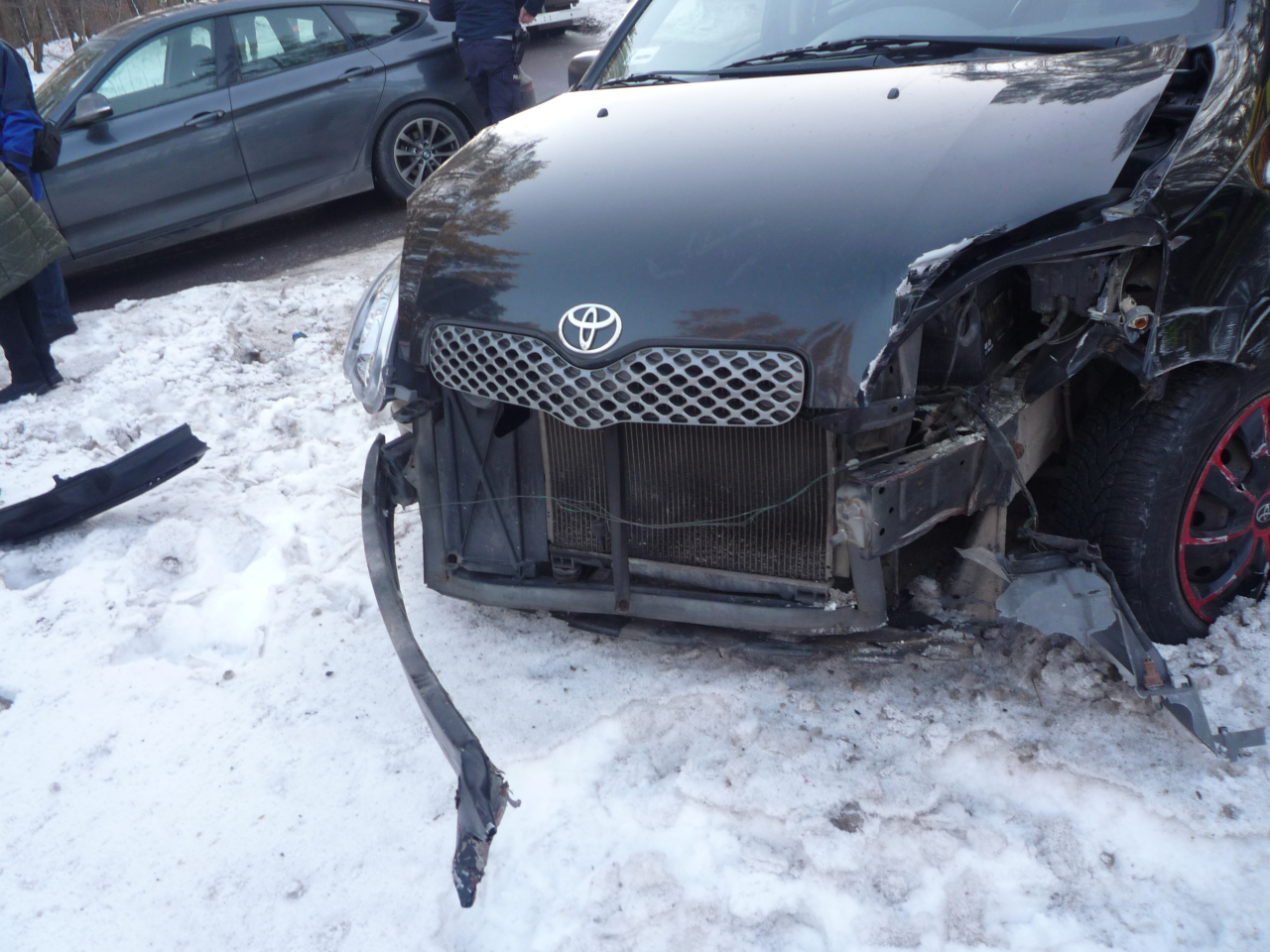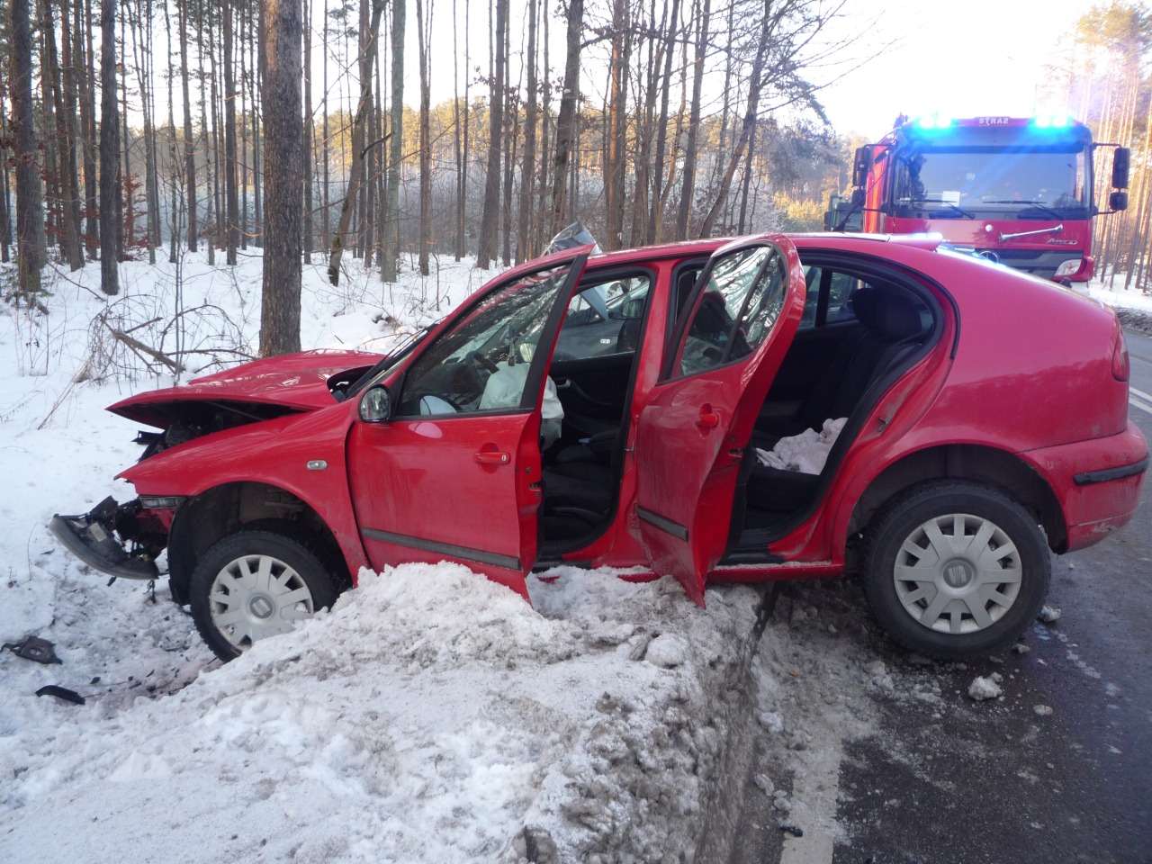Policjanci ruchu drogowego wstępnie ustalili okoliczności tego zdarzenia. Z ulicy Kościelnej wyjeżdżał samochód marki Toyota, kierowany przez 74-letnią kobietę. Nie upewniła się ta pani, żeby ustąpić pierwszeństwo, wymusiła pierwszeństwo samochodowi marki Seat Leon, kierowanemu przez 41-latka. Doszło do zderzenia się. Siła uderzenia była tak duża że Seat Leon zjechał na przeciwległy pas ruchu i zderzył się czołowo samochodem Audi A3, kierowanym przez 20-latka. Dwoje pasażerów Audi A3, seniorów, zostało przetransportowanych z obrażeniami do kościerskiego szpitala.