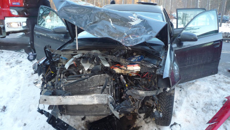 Wypadek drogowy na trasie Nowa Kiszewa - Dębogóry w powiecie kościerskim. Kierowca bmw uderzył w drzewo