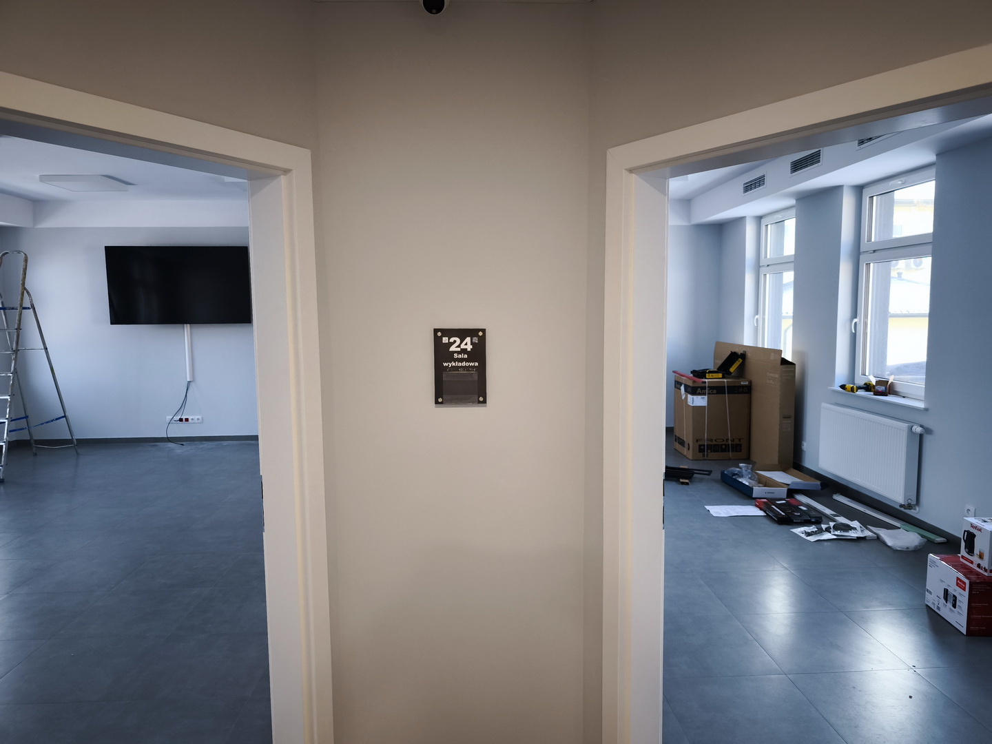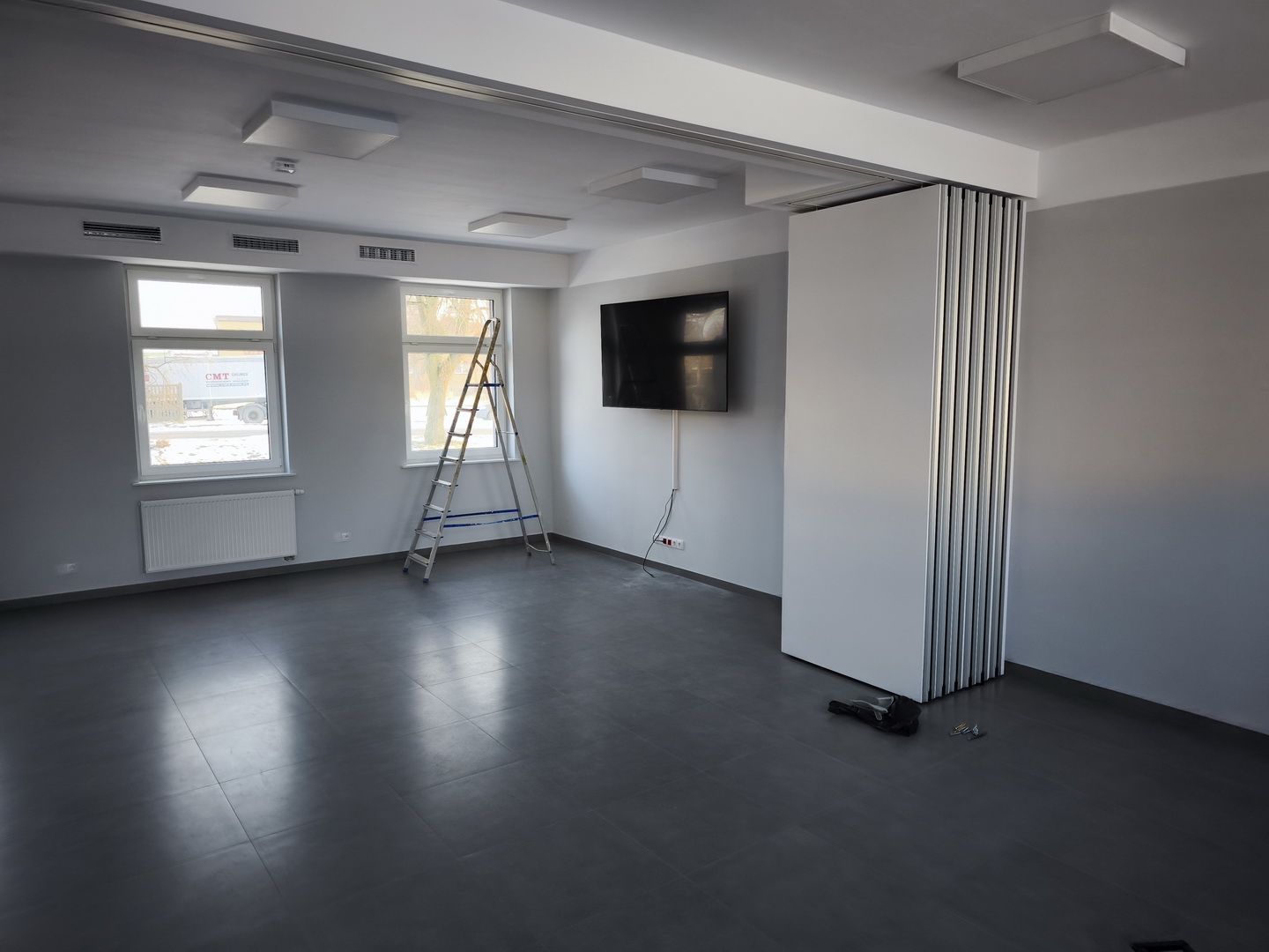 Budynek jest dwukondygnacyjny, na wyższej kondygnacji jest to 151 metrów łącznie, które pozyskaliśmy i oprócz biur jeszcze jest oczywiście sala wykładowa z możliwością przedzielenia na dwie części i poziom 0, czyli 155 metrów. Tam jest wypożyczalnia sprzętu, składnica akt, biuro wypożyczeń, WC i komunikacja.