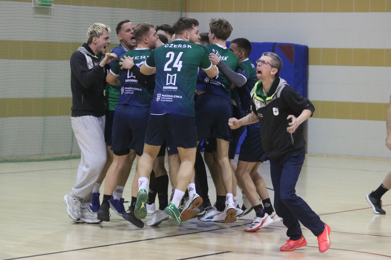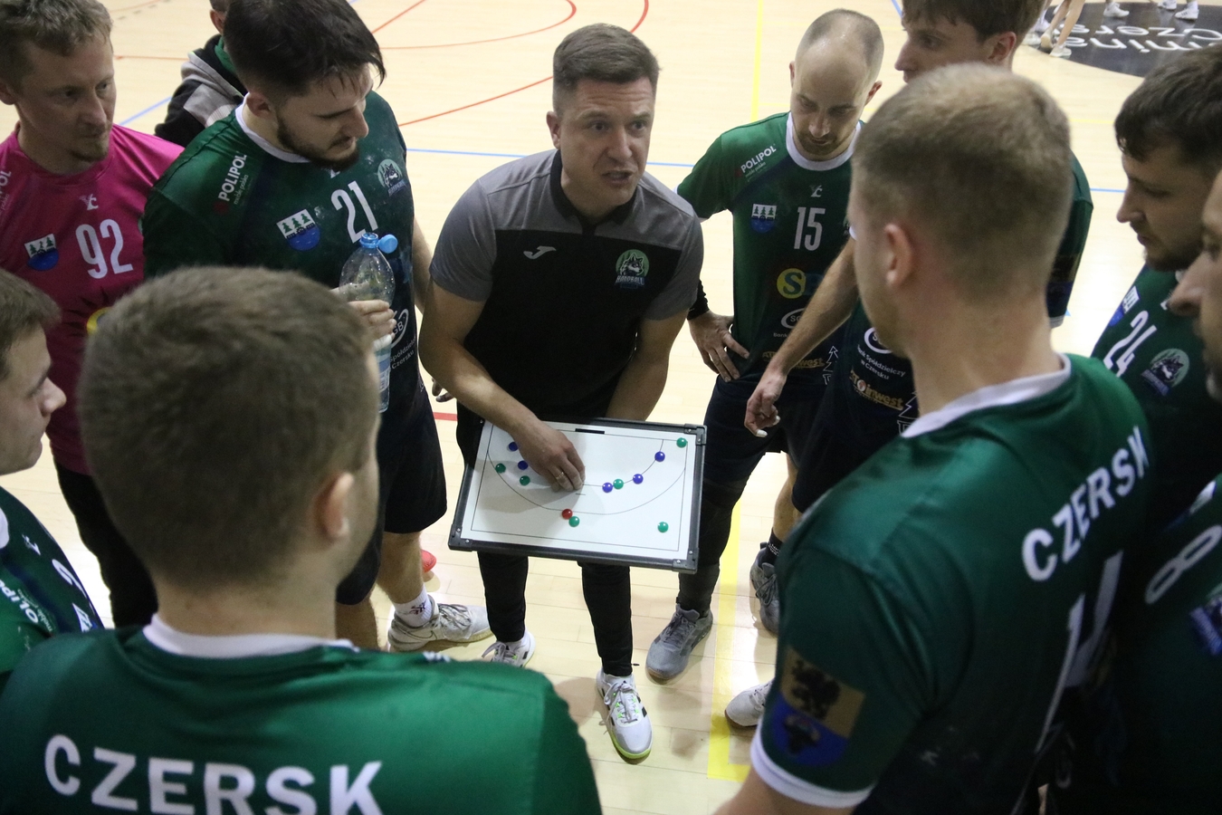 Jego podopieczni mecz rozpoczęli świetnie, bo od prowadzenia 7:2. Na przerwę czerszczanie schodzili jednak przegrywając dwoma bramkami. Gdy po zmianie stron wyrównali, oba zespoły rzucały gola za golem – aż do samego końca utrzymywał się remis. Dzięki zwycięstwu w rzutach karnych, czerszczanie dopisali dwa punkty do swojego konta. To ich druga wygrana z rzędu.