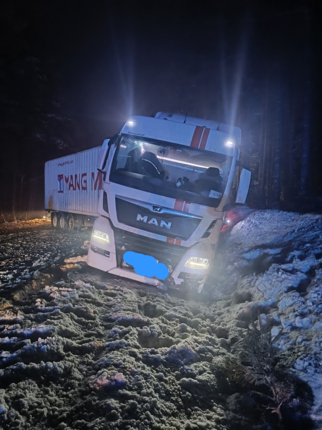 Zablokowana droga wojewódzka 235 na odcinku Korne-Lipusz. Ciężarówka stoi w poprzek jezdni