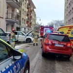 Kolizja na ul. Drzymały w Chojnicach. Auto osobowe uderzyło w budynek wielorodzinny i inne pojazdy