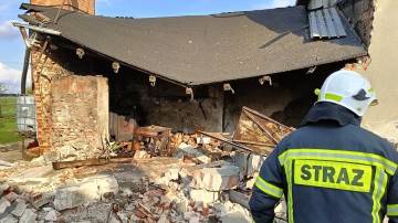 Bysław: Wybuch instalacji wodnej w piecu centralnego ogrzewania. Kotłownia zamieniła się w stertę gruzu