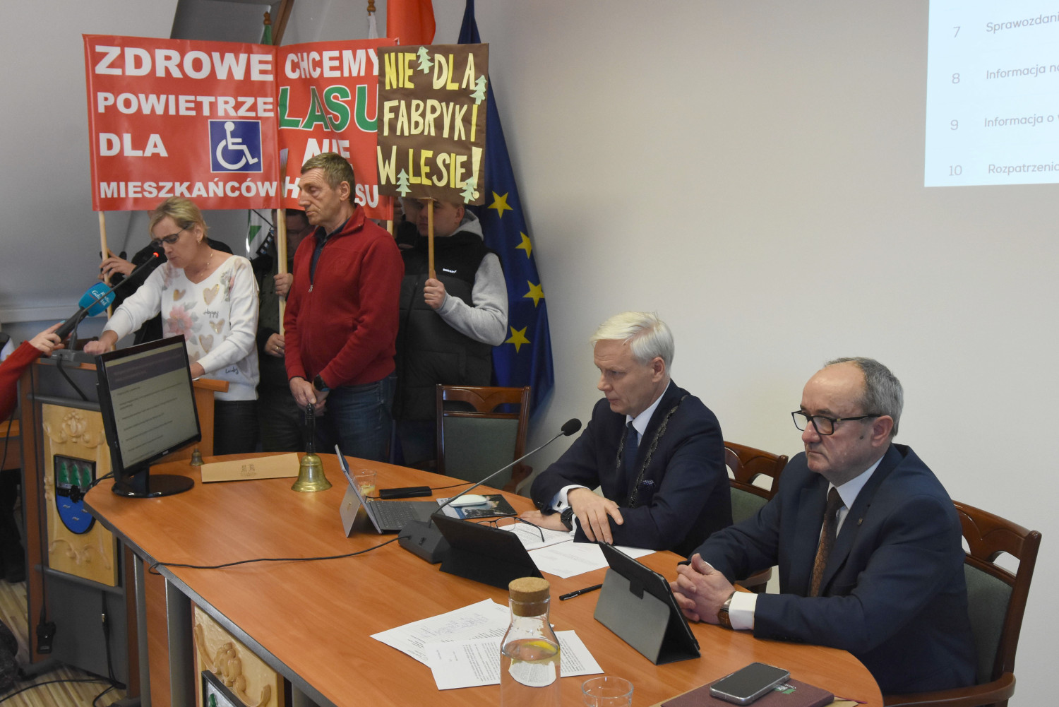 Stanowczy sprzeciw mieszkańców wobec rozbudowy zakładu w Rytlu. Pikieta przed ratuszem i wystąpienie na sesji (FOTO)