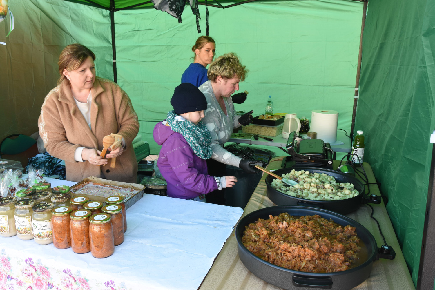 Na stoisku mamy swojskie wyroby, chlebek na zakwasie i nie tylko, białą kiełbasę, słoikową i pyszne ciasta. To przygotowałyśmy razem z koleżankami z koła, to są swojskie wyroby wszystkie, przygotowywane przez nas, przez członkinie koła gospodyń.