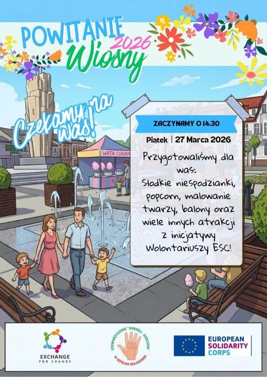 Stowarzyszenie "Dorośli - dzieciom" w Sępólnie Krajeńskim zaprasza dziś (27.03.) na przywitanie wiosny z europejskim wolontariatem.